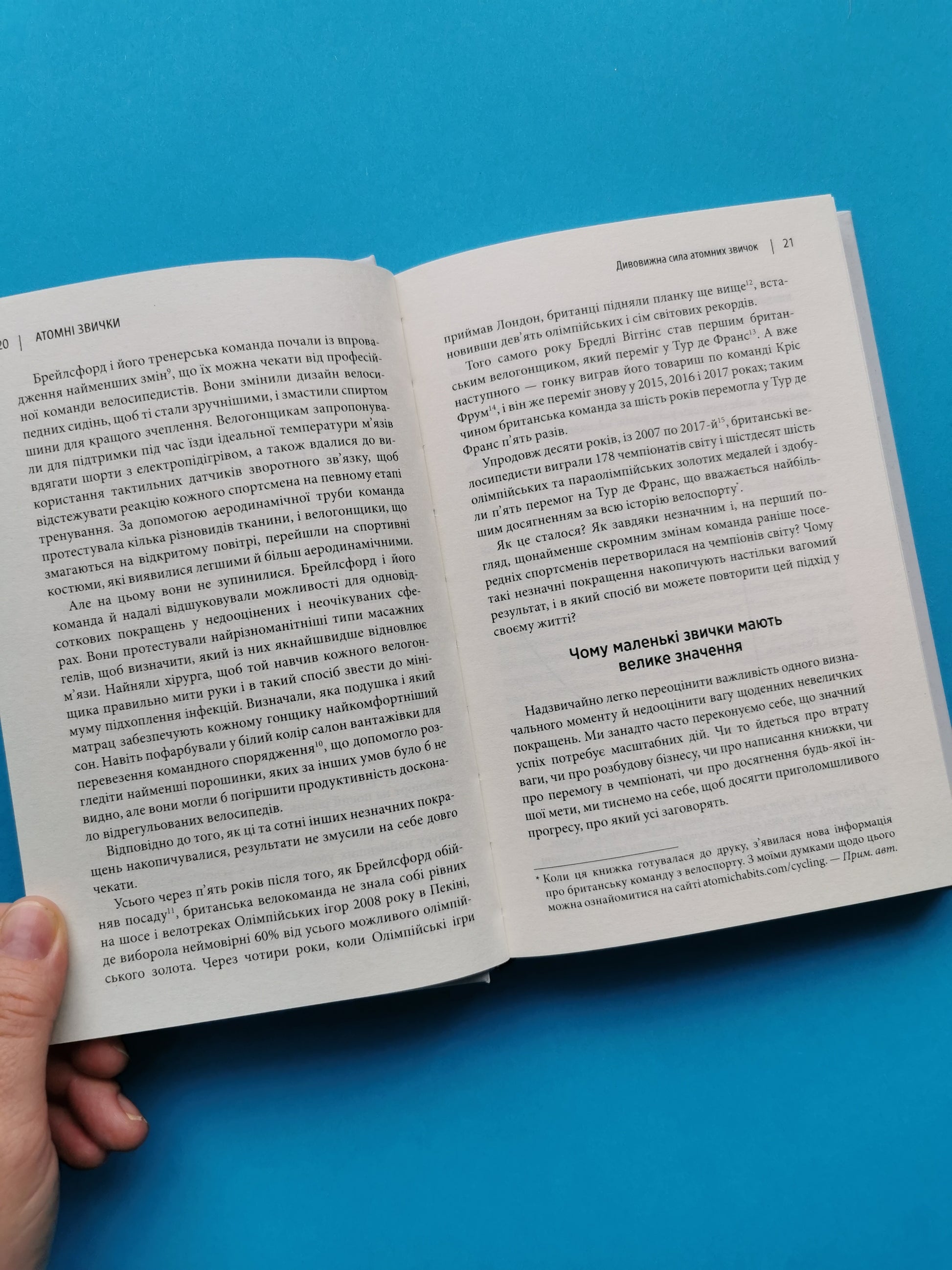 Дізнайтеся секрет тривалих результатів! Нашпигована заснованими на фактах стратегіями із самовдосконалення, книга «Атомні звички» навчить, як набути манер і навиків, що працюватимуть на вас, а не проти вас. У книзі Джеймс Клір ділиться надзвичайно цікавою і по-справжньому продуктивною методикою напрацювання корисних звичок. В її основі лежить поняття чотириступеневої моделі звичок (подразник, прагнення, відгук, винагорода), а також чотири породжені цією моделлю закони зміни поведінки. Викладений матеріал підтверджується результатами наукових досліджень, проте книгу слід трактувати не як наукову розвідку, а як посібник з експлуатації, що містить мудрі практичні поради та пояснення механізмів створення і змінювання власних звичок. Єдиного правильного способу набуття корисних звичок, звісно, не існує, але автор пропонує найкращий із відомих підхід, який спрацює незалежно від того, з чого саме ви починаєте і що саме намагаєтеся змінити.
