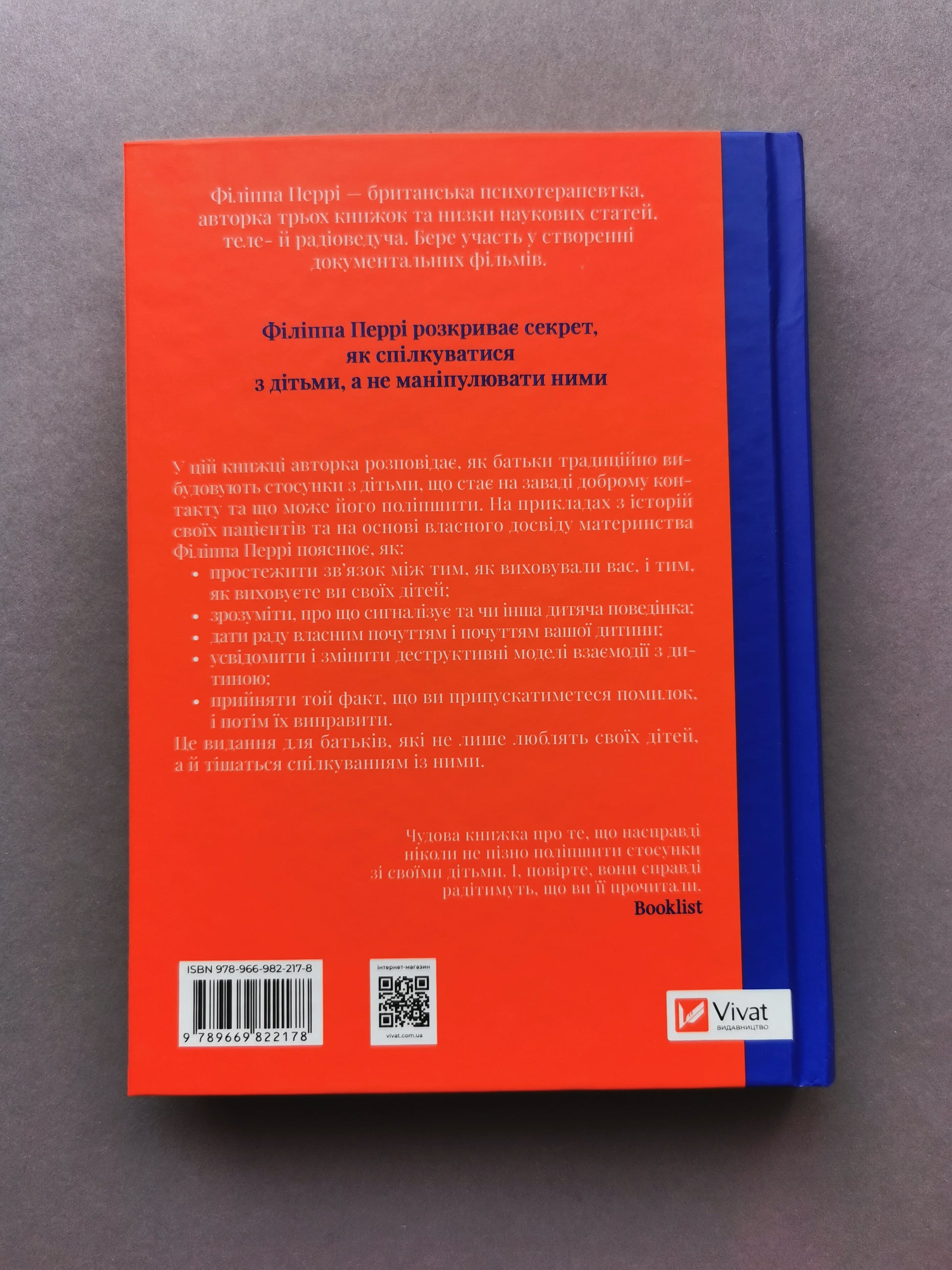 У цій книжці Філіппа Перрі розповідає, як батьки традиційно вибудовують стосунки з дітьми, що стає на заваді доброму контакту та що може його покращити. На прикладах з історій своїх пацієнтів та на основі власного досвіду материнства авторка пояснює, як: