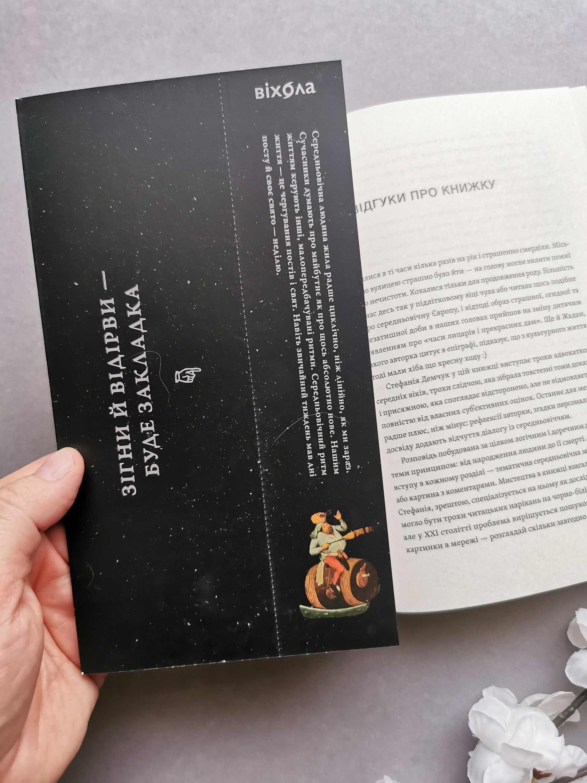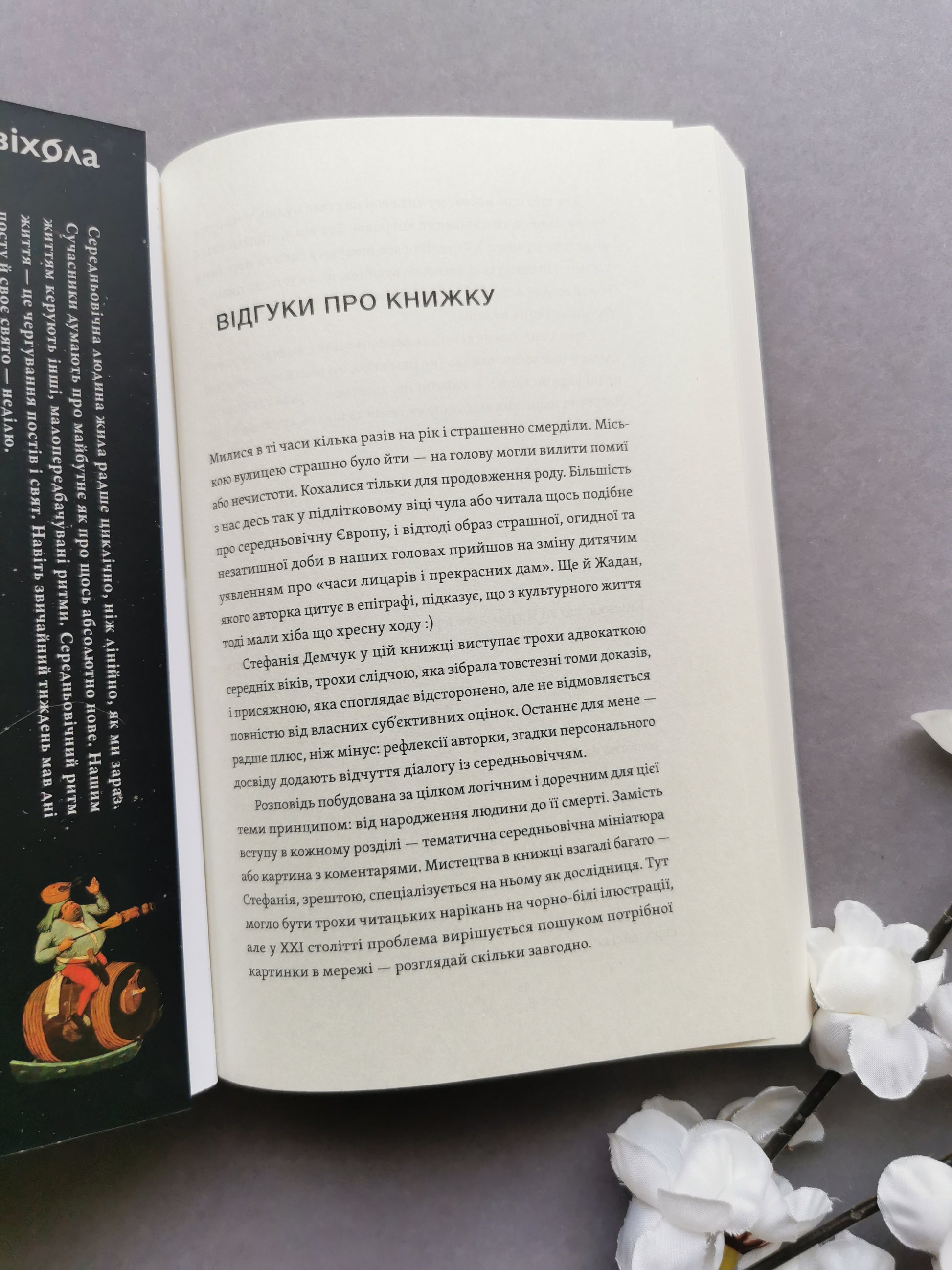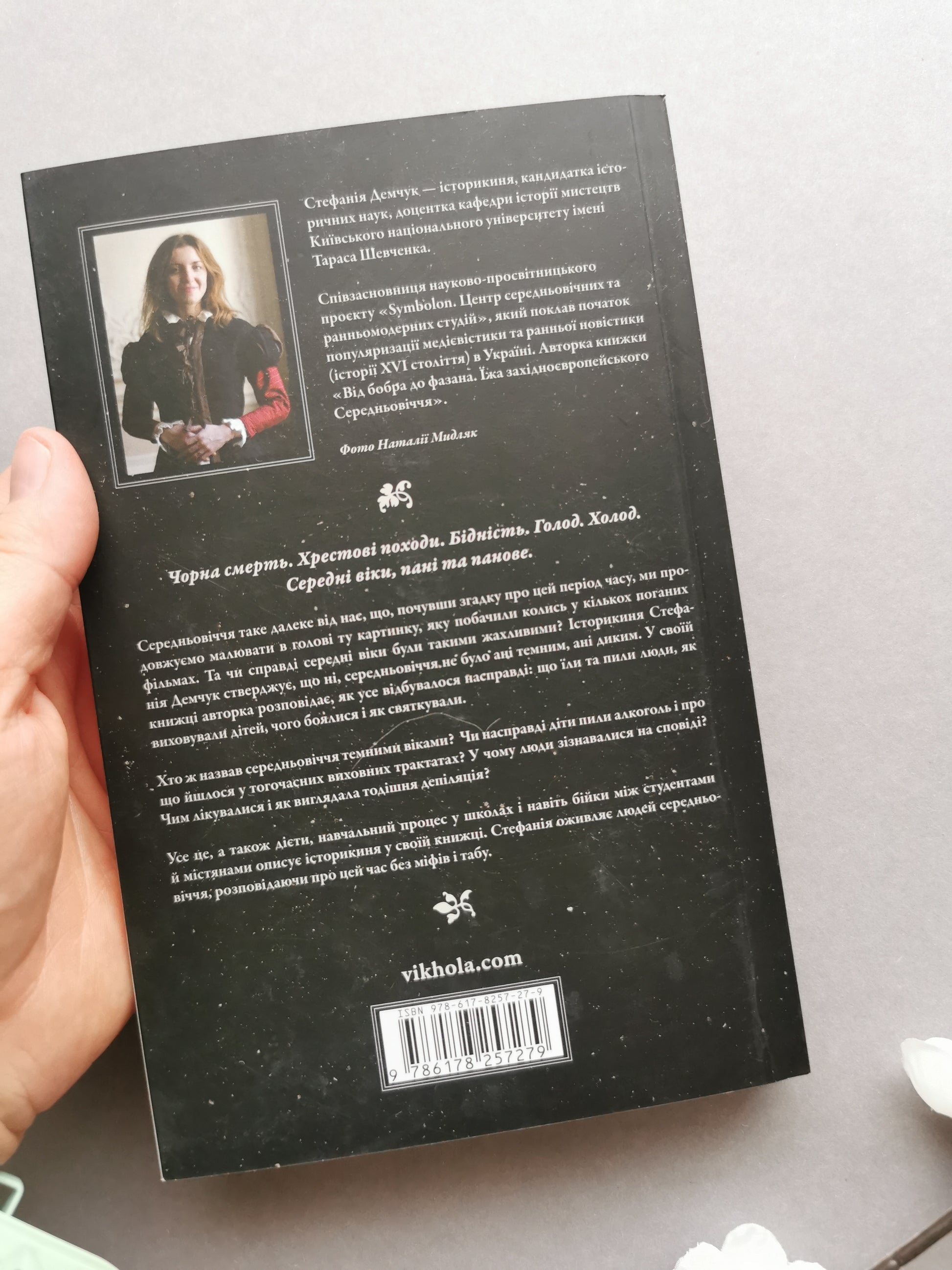Чорна смерть. Хрестові походи. Бідність. Голод. Холод. Середні віки, пані та панове. Середньовіччя таке далеке від нас, що, почувши згадку про цей період часу, ми продовжуємо малювати в голові ту картинку, яку побачили колись у кількох поганих фільмах. Та чи справді середні віки були такими жахливими? Історикиня Стефанія Демчук, стверджує, що ні, середньовіччя не було ані темним, ані диким. У своїй книжці авторка розповідає, як усе відбувалося насправді: що їли та пили люди, як виховували дітей, чого боялися і як святкували. Хто ж назвав середньовіччя темними віками? Чи насправді діти пили алкоголь і про що йшлося у тогочасних виховних трактатах? У чому люди зізнавалися на сповіді? Чим лікувалися і як виглядала тодішня депіляція? Усе це, а також дієти, навчальний процес у школах і навіть бійки між студентами й містянами описує історикиня у своїй книжці. Стефанія оживляє людей середньовіччя, розповідаючи про цей час без міфів і табу.