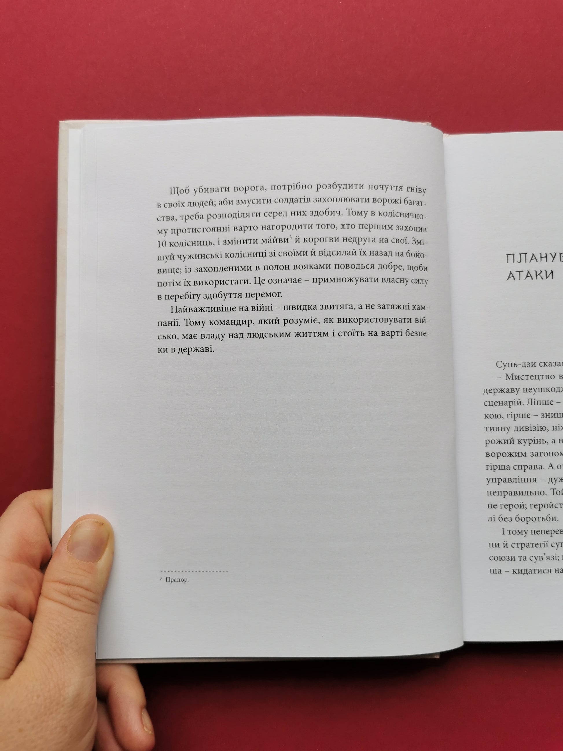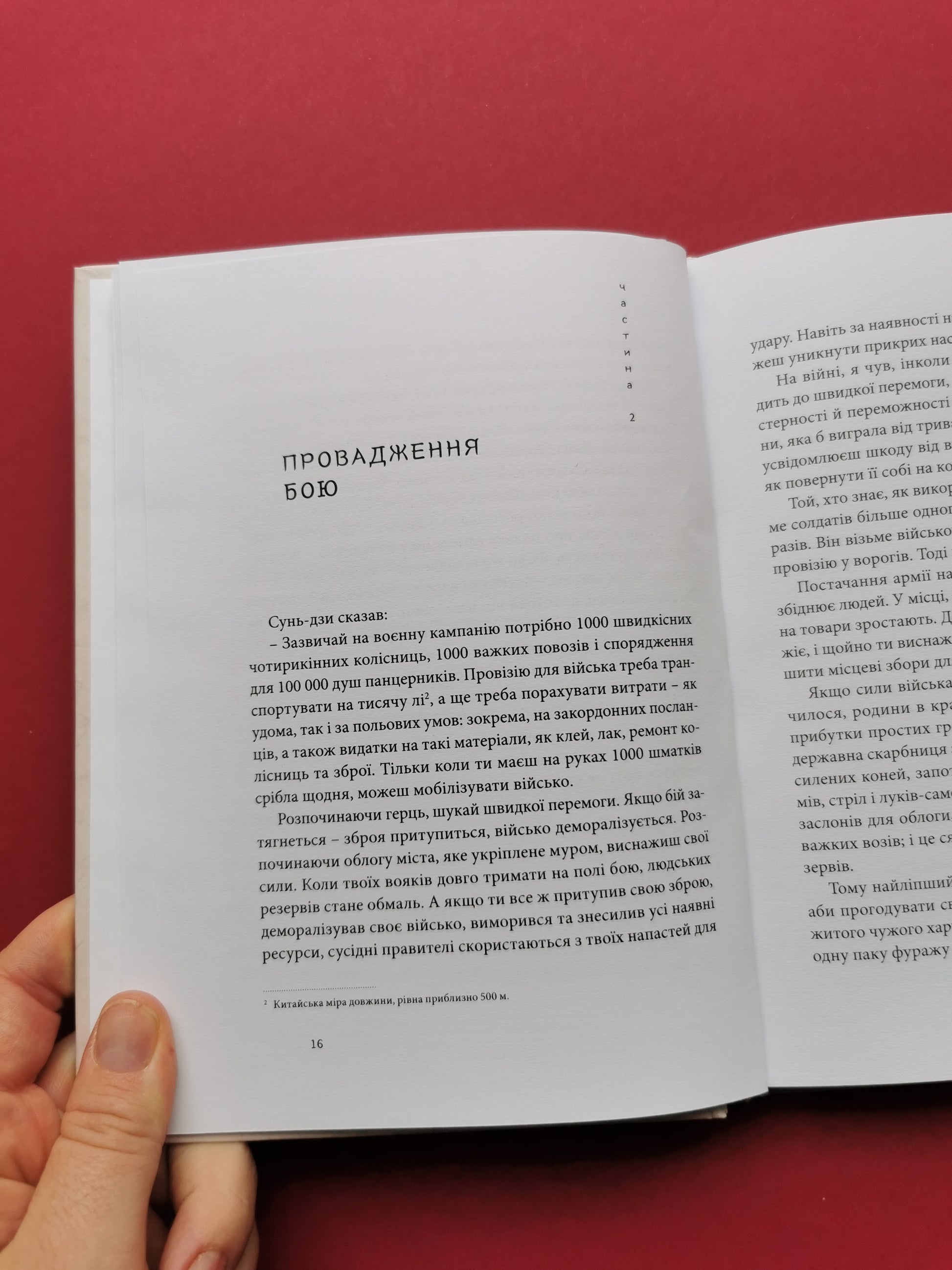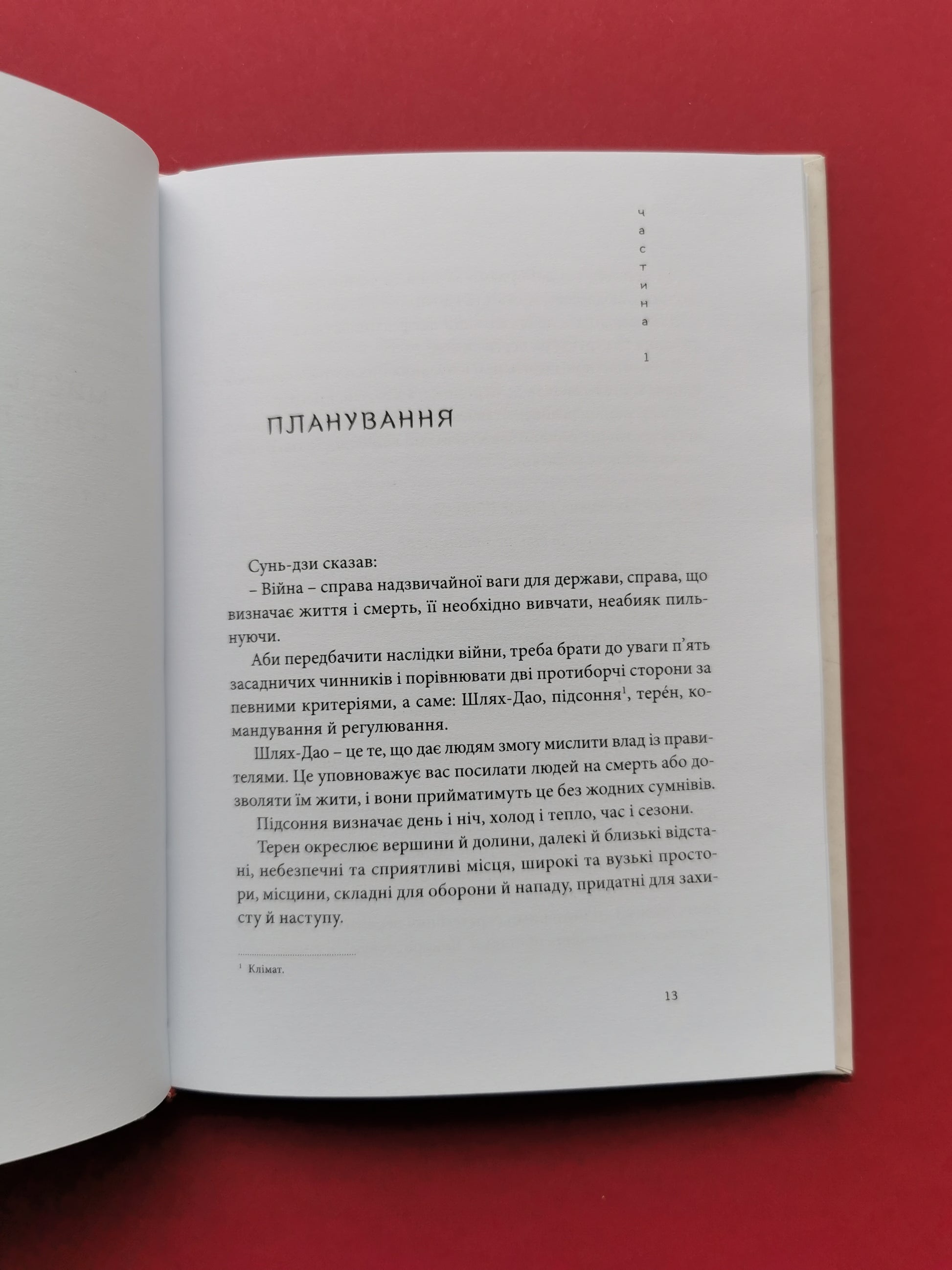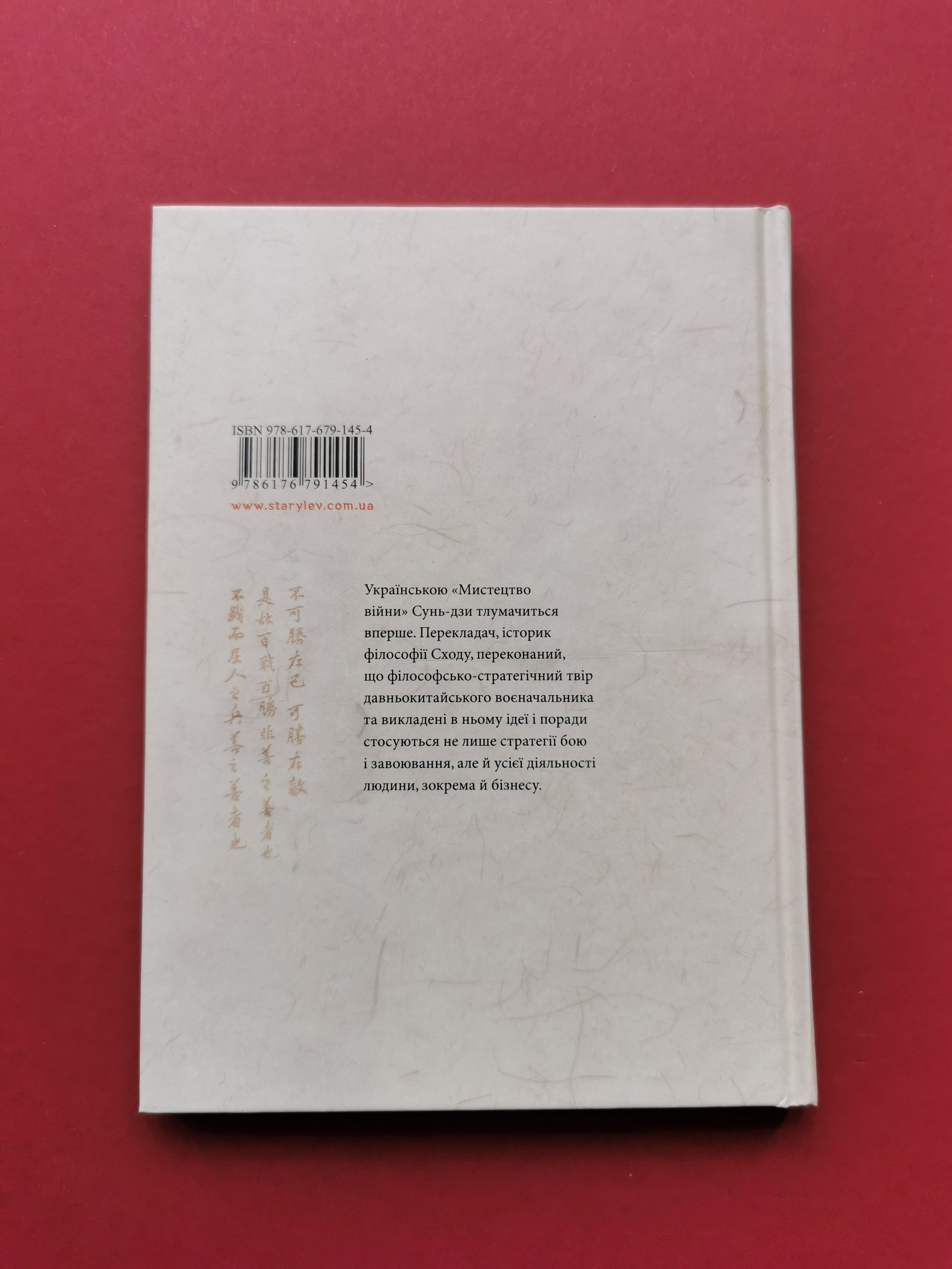 Українською «Мистецтво війни» Сунь-дзи тлумачиться вперше. Перекладач, історик філософії Сходу, переконаний, що філософськостратегічний твір давньокитайського воєначальника та викладені в ньому ідеї і поради стосуються не лише стратегії бою і завоювання, але й усієї діяльності людини, зокрема й бізнесу.
