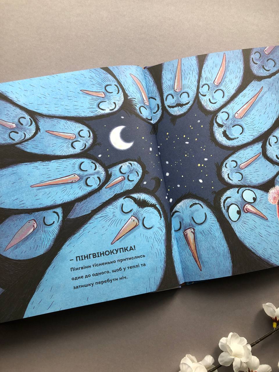 Коли сонце заходить за обрій і на Північному полюсі настає холодна ніч, зграя пінгвінів збирається у ПІНГВІНОКУПКУ, щоб їм було тепло й затишно. Та якось уночі здійнявся крижаний буревій. А наступного ранку пінгвіни змерзлися, немов велетенське ПІНГВІНЯЧЕ морозиво! Оце так пінгвіняча задачка! Та в найменшого з них, Писклика, є ідея...