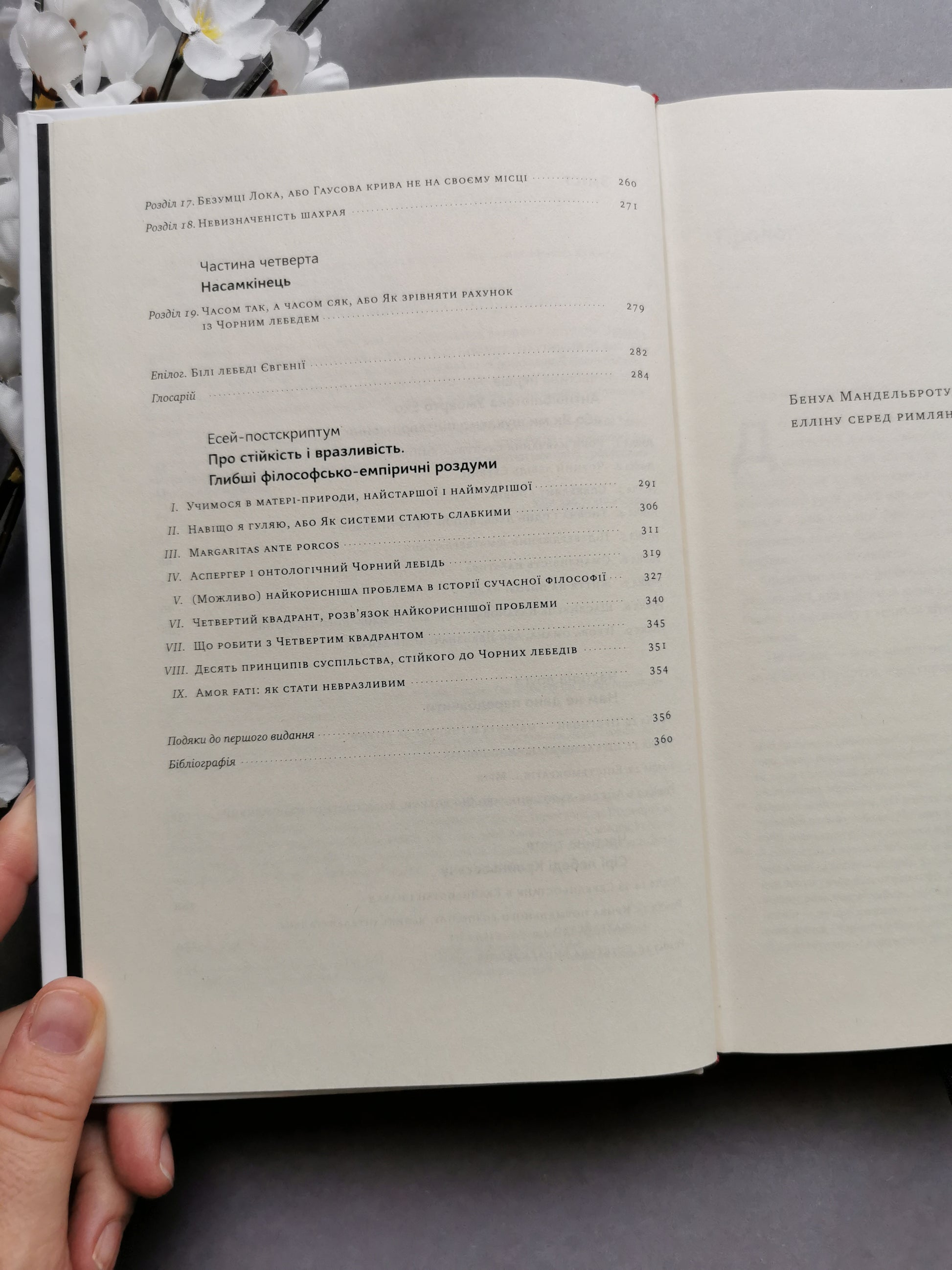 Цілком очевидно, що життя — це сумарний ефект небагатьох важливих потрясінь. Згадайте своє життя. Перерахуйте важливі події й технологічні винаходи, що припали на ваш вік, і порівняйте з колись напрогнозованим. Скільки їх «приїхало за розкладом»? Подивіться на особисте життя, згадайте, як вибирали професію, зустріли свою половинку, емігрували, стикнулися зі зрадою, несподівано розбагатіли або впали у злидні. Чи часто ці події відбувалися за планом? Малоймовірну подію, яка справляє колосальний ефект, колишній трейдер Насім Талеб влучно називав Чорним лебедем.