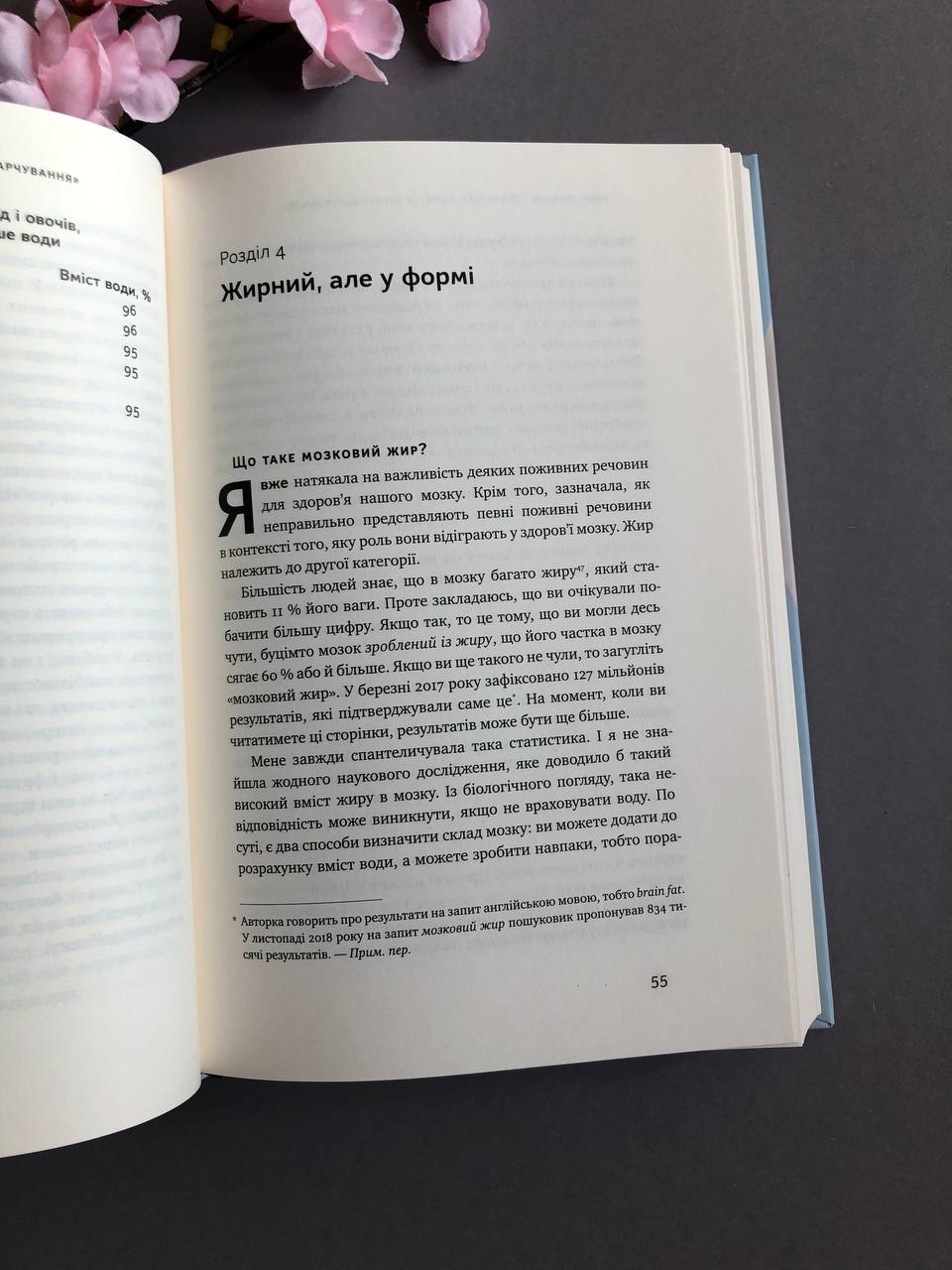Наш мозок - особливий орган. Його робота безпосередньо залежить від їжі, яку ми споживаємо. Однак поради, які ми щодня бачимо в інтернеті, часто суперечливі й непослідовні. Одного дня ми читаємо, що треба за будь-яку ціну уникати холестерину, а наступного - що він навпаки підтримує здоров'я мозку. Проблема таких сенсаційних заяв у тому, що лише мізерну їх частку було ретельно перевірено. То якою має бути їжа для мозку? Чи здатна лише сама оливкова олія врятувати від «Альцгеймера»? Яка глюкоза потрібна нашому мозкові? І як зробити свій корисний раціон не лише поживним, а й смачним?