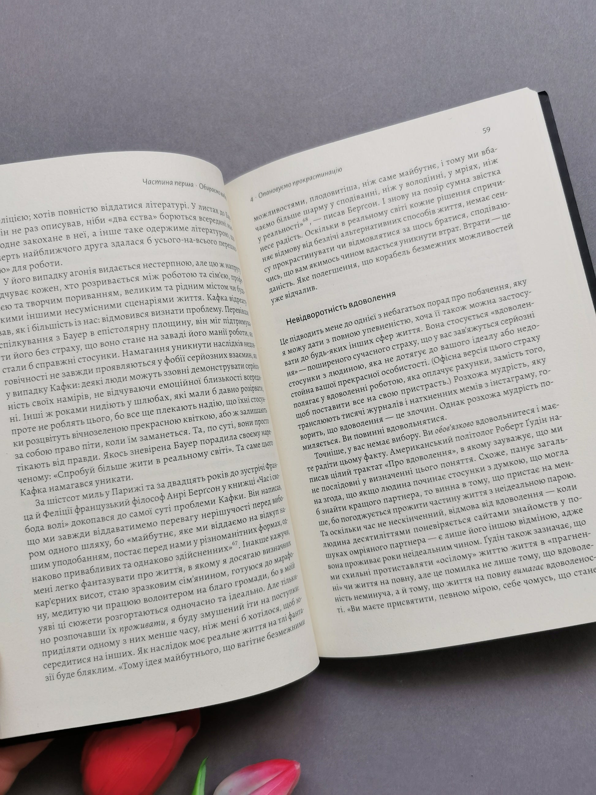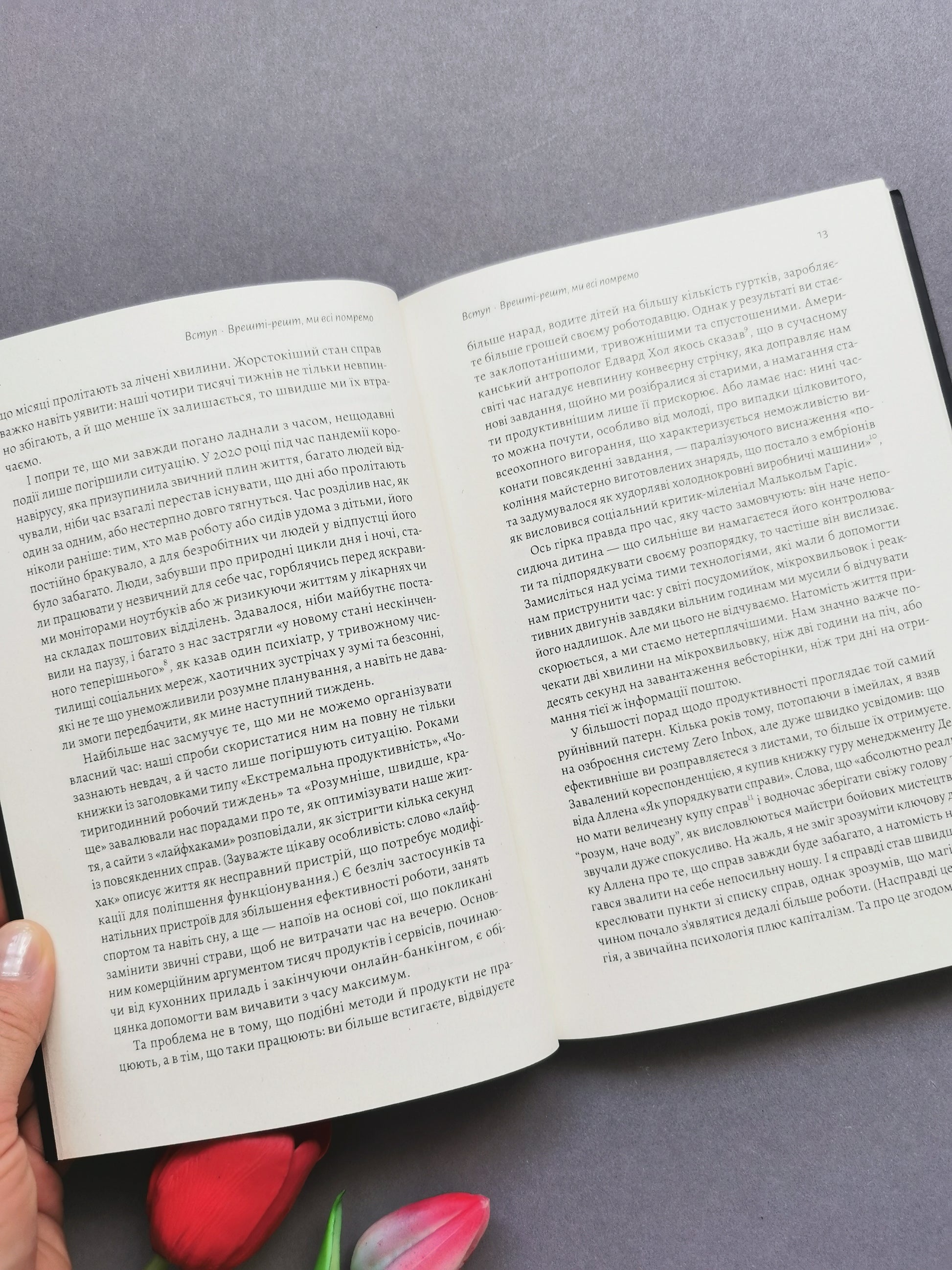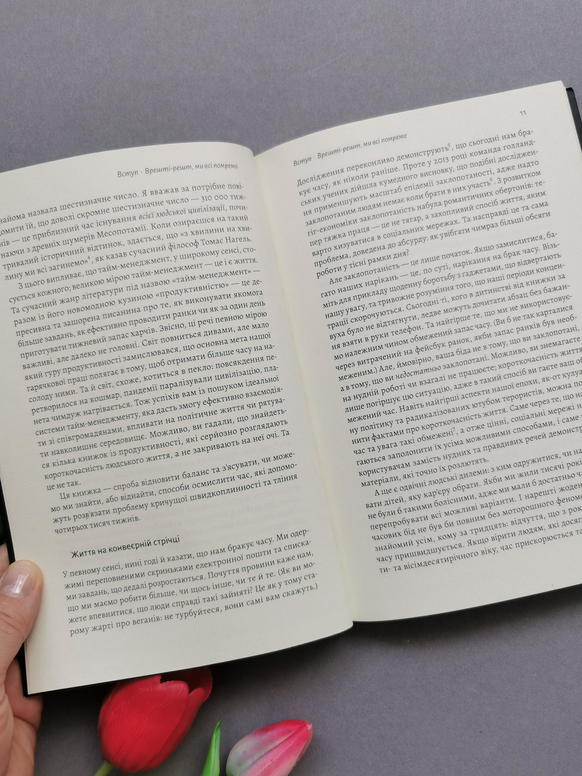 Людське життя сміхотворно коротке. Все, що ми маємо — це в середньому 4 тисячі тижнів, або ж 80 років. Усвідомивши це, вам точно перехочеться витрачати свій час на скроління соцмереж. В погоні за продуктивністю та намаганням все встигати, ми часто втрачаємо зв’язок із самими собою, забуваємо, що для нас справді важливо. Пріоритетність розмивається, а бажання завжди досягати максимальних результатів робить нас надміру тривожними, викликає стрес і роздратування. Як зрозуміти, що для нас є справді важливим, а що не варте і крихти нашого часу? Як наповнити своє життя сенсом та зосередитись на справді важливих для нас речах? Так, чотири тисячі тижнів — це справді мало. Але цього точно достатньо, щоб прожити усвідомлене та наповнене життя. Автор поєднує підходи стародавніх та сучасних філософів, психологів та духовних вчителів, щоб вибудувати свою теорію про управління часом. Саме тому знання, які він виклав у цій книжці, не старіють і не втрачають свою актуальність і до сьогодні, бо базуються на вічних цінностях.