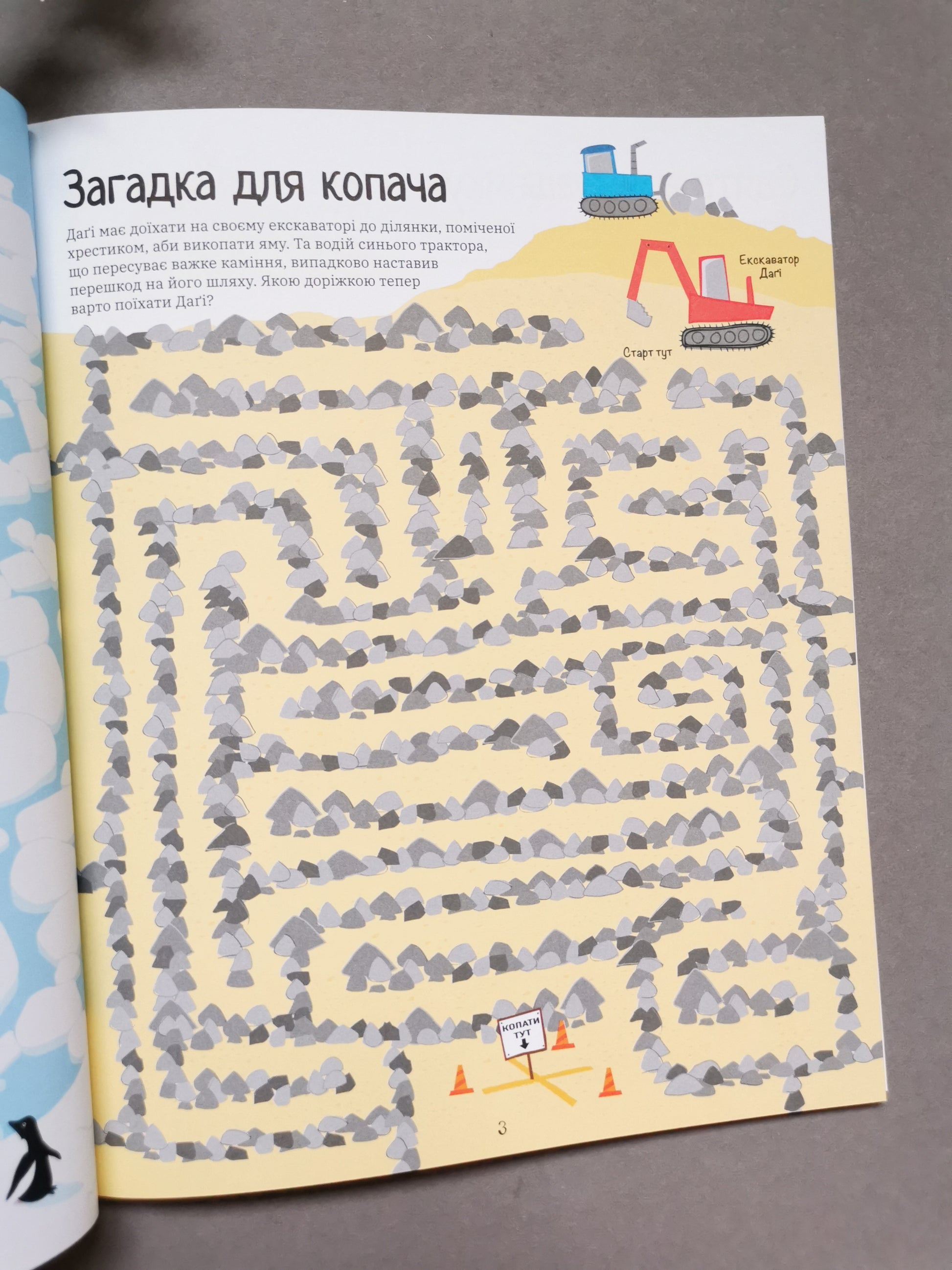 «Велика книга лабіринтів» — це книжка-гра для активного дозвілля дитини. Все починається з простих лабіринтів, але що далі, то складнішими вони стають. Але пройти їх усі, — не лише нелегка справа, а й велика насолода! Для цього необхідно прокласти шлях до загублених друзів, подолати всі небезпеки, відшукати скарби та розгадати чимало загадок і головоломок.