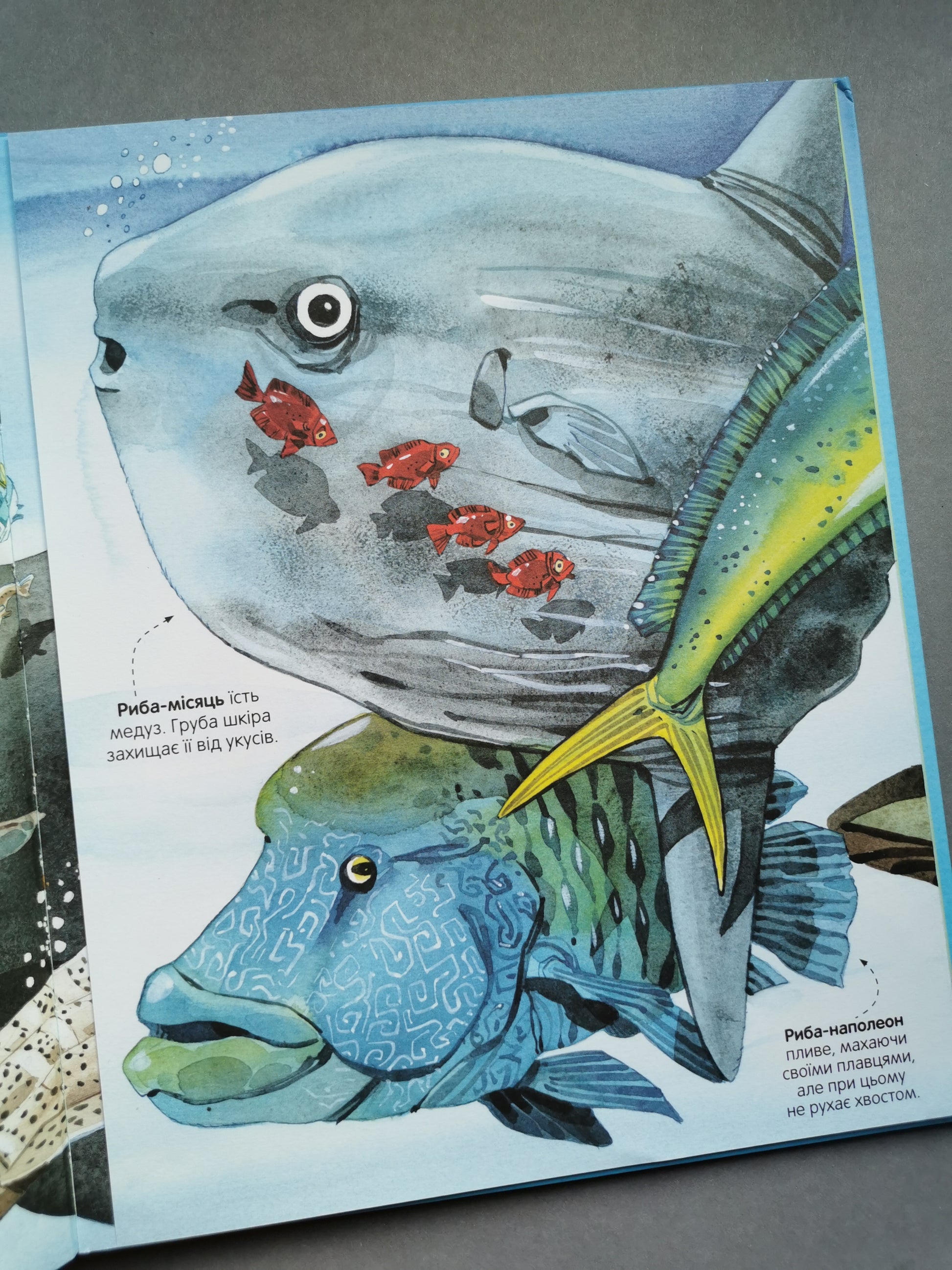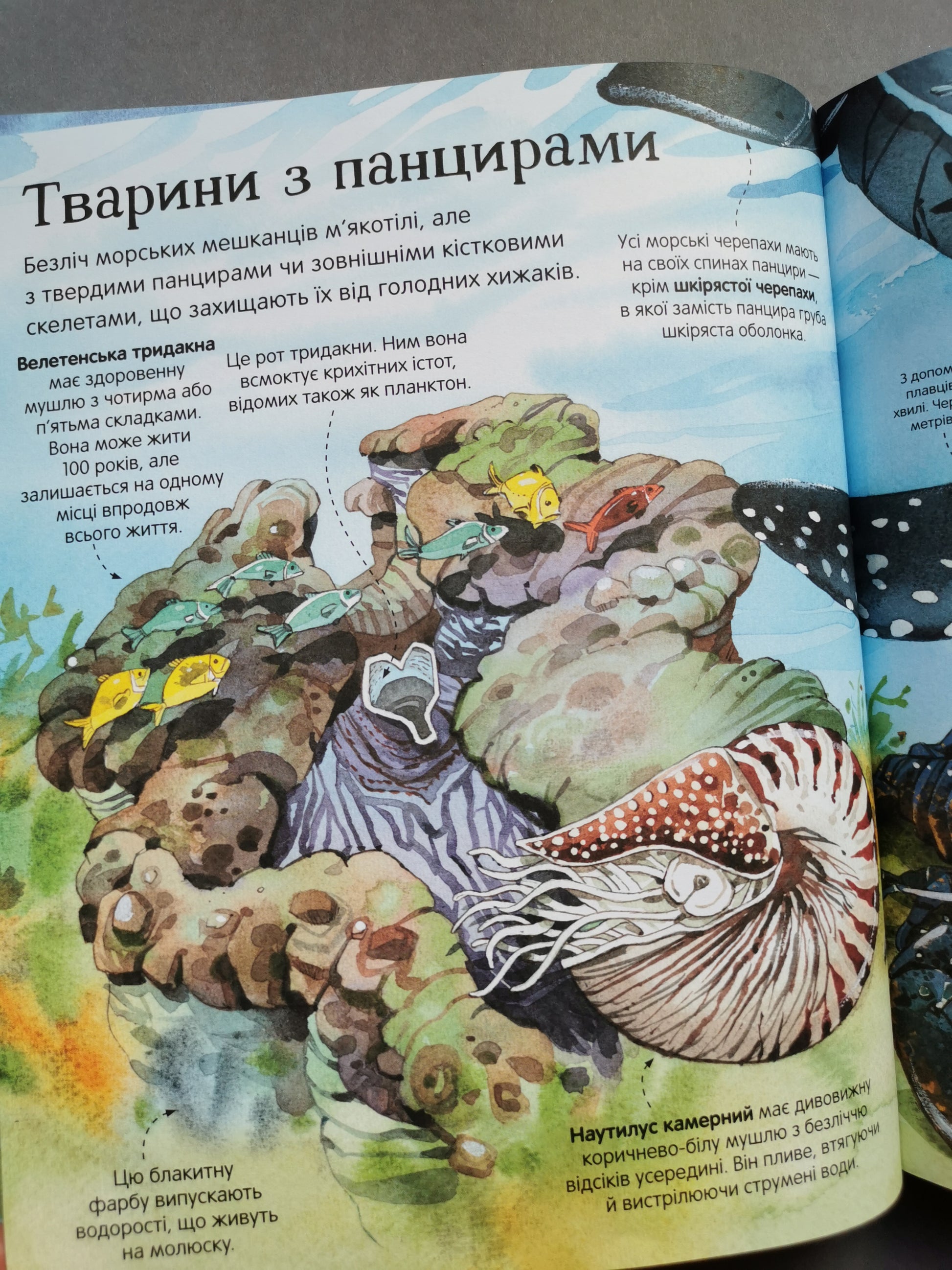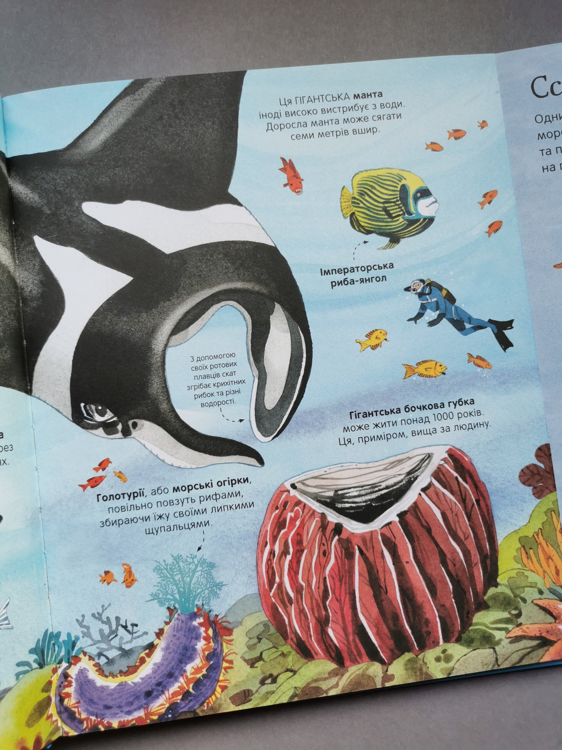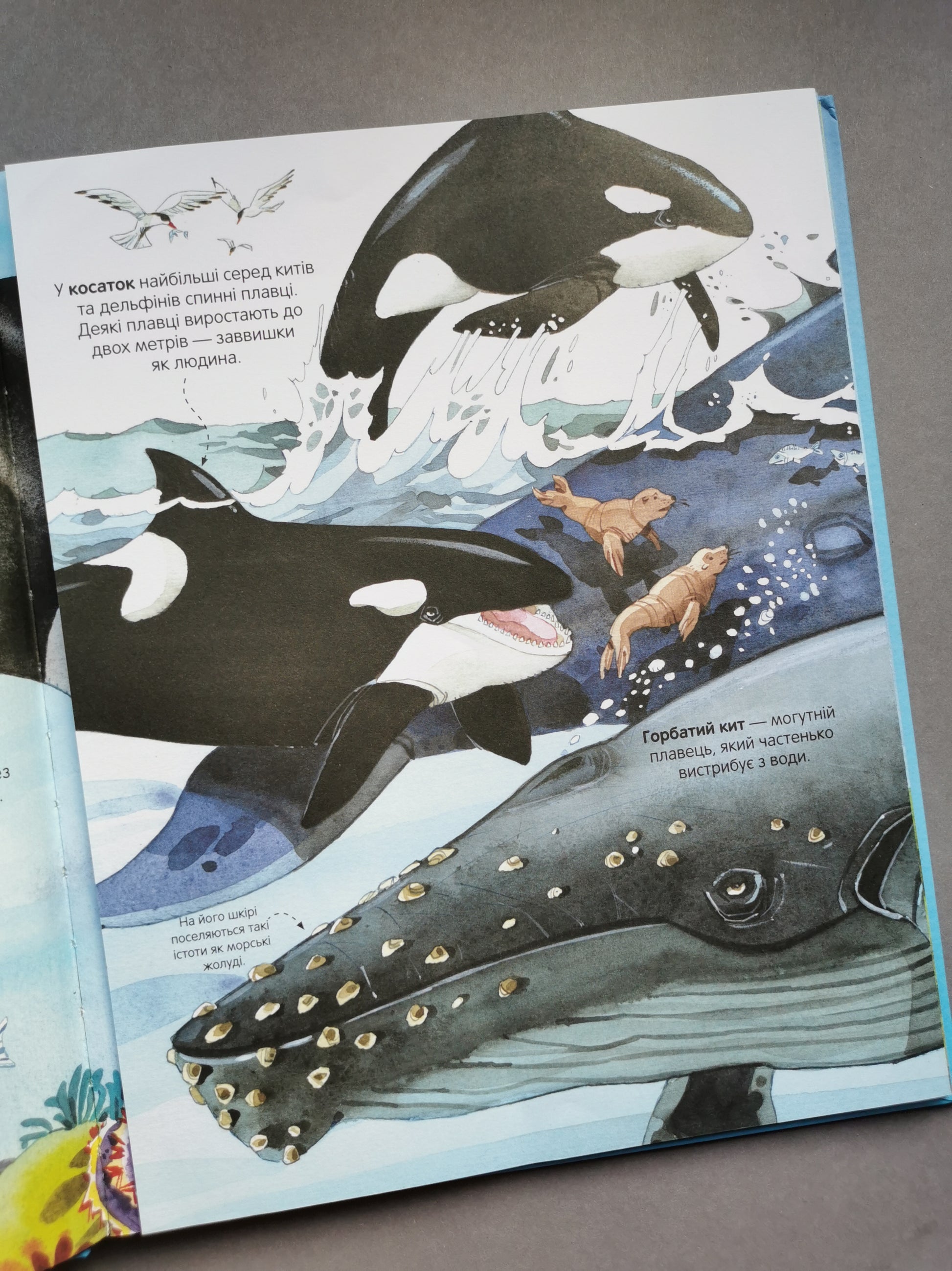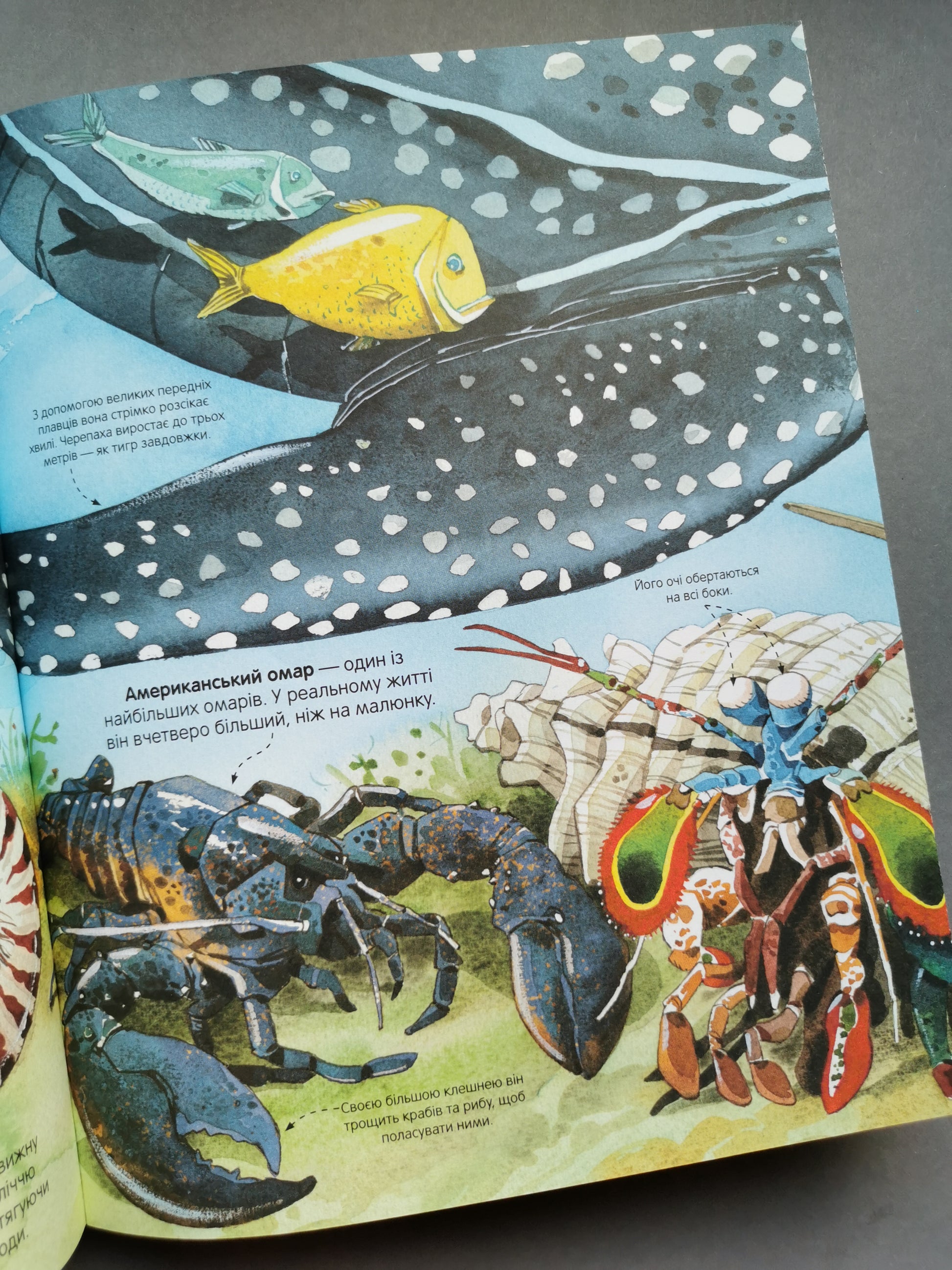 Відкрий для себе світ надзвичайних морських істот! На 4 велетенських розгортках є найцікавіші з них: від спритної морської черепахи і небезпечної білої акули до найбільшої тварини на землі — могутнього блакитного кита.