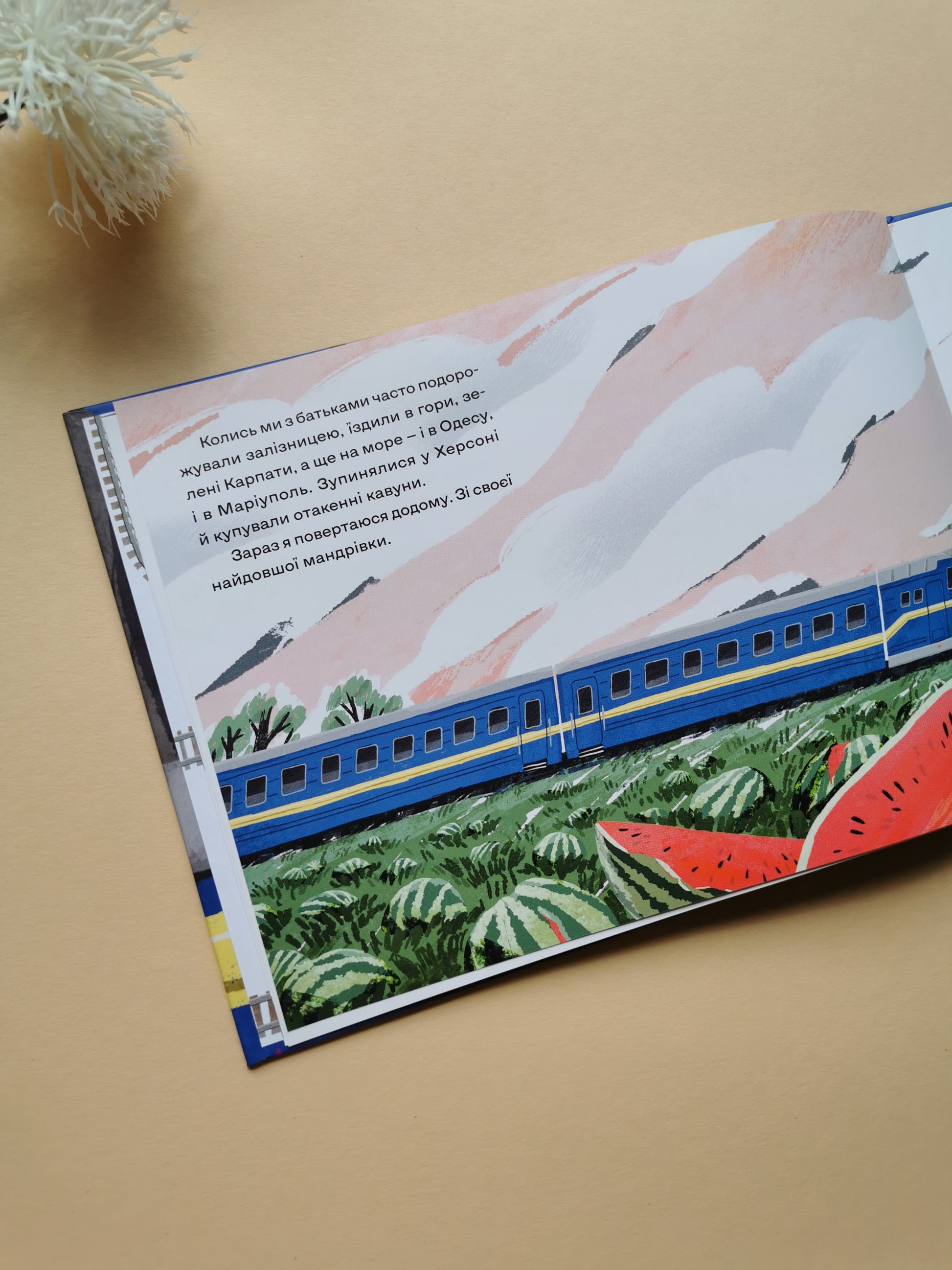 Потяг «Укрзалізниці» мчить золотими полями. Єва з мамою і новими друзями повертається додому з найдовшої своєї мандрівки. У часі повномасштабної війни дівчинці, як і дуже багатьом українським діткам, довелося сісти в евакуаційний потяг і поїхати якнайдалі від дому, тікаючи від танків, ракет і бомб. «Залізницею додому» - чуйна оповідь Мар‘яни Савки, проілюстрована Мартою Кошулінською, про любов до Батьківщини і дому, дружбу та родину і про непересічну роль українських залізничників у новітній історії нашої країни.