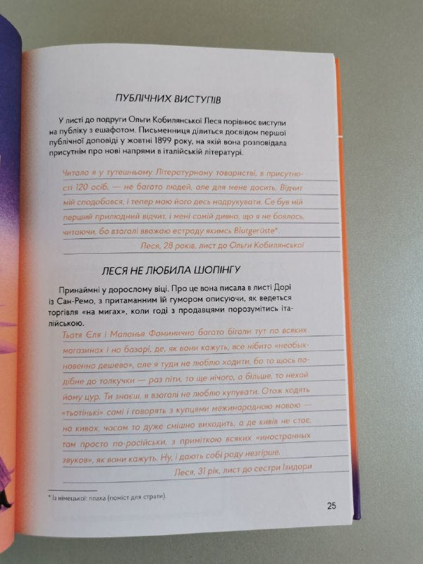 Ми щодня зустрічаємо Лесю Українку в пам'ятниках і назвах вулиць, на купюрах і в шкільних кабінетах. Але яким щодня бачила світ сама Леся? Жива людина, а не офіційний портрет. Що вона любила, з чого сміялася й сумувала, про що писала листи рідним, з ким дружила? Кумедні прізвиська для братів-сестер, хоумскулінг, стильні вбрання, нехіть до публічних виступів і далекі мандри — певно, кожен знайде щось спільне з Лесею, яка називала себе boule vagabonde — «мандрівний клубочок».