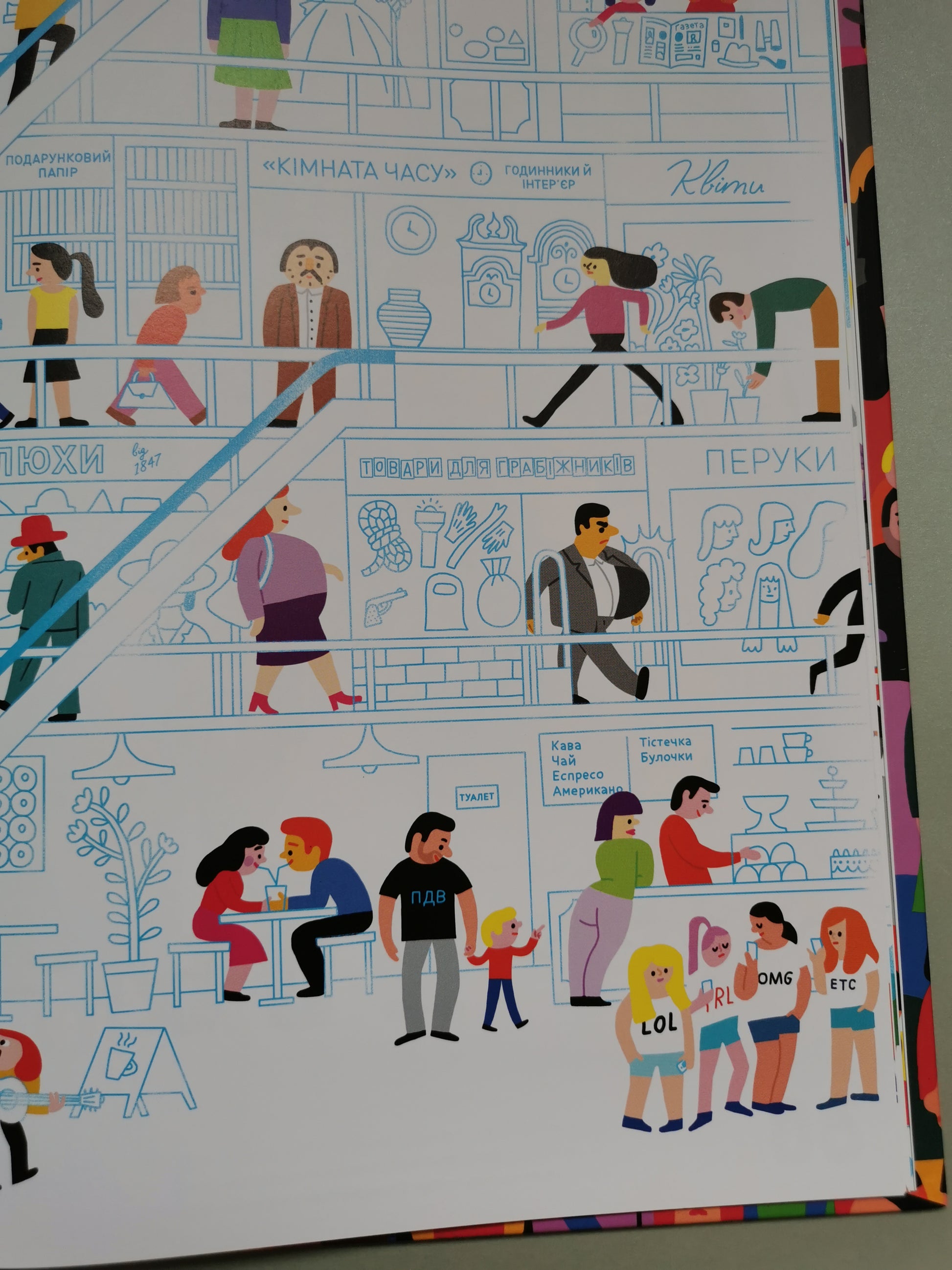 Класно, що люди такі різні! Перед тобою віммельбух, де ти можеш рахувати людей, спостерігати за ними, відчувати разом із ними і бачити, як переплітаються їхні історії.