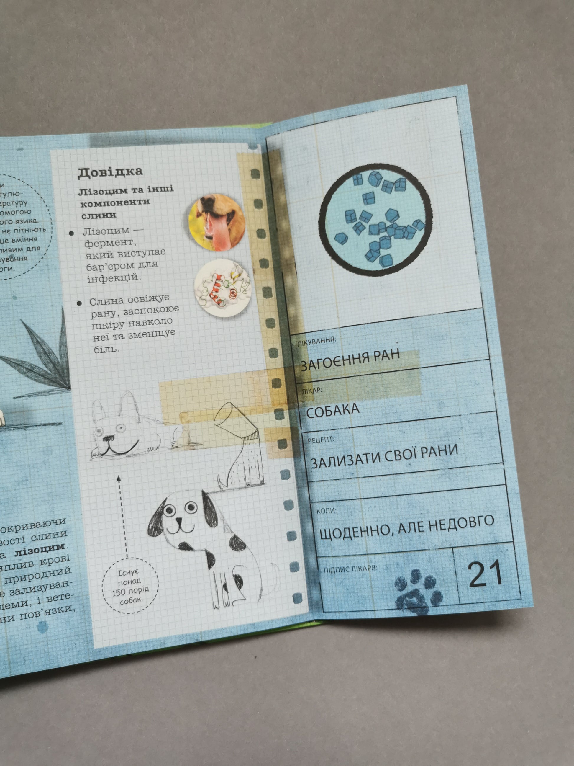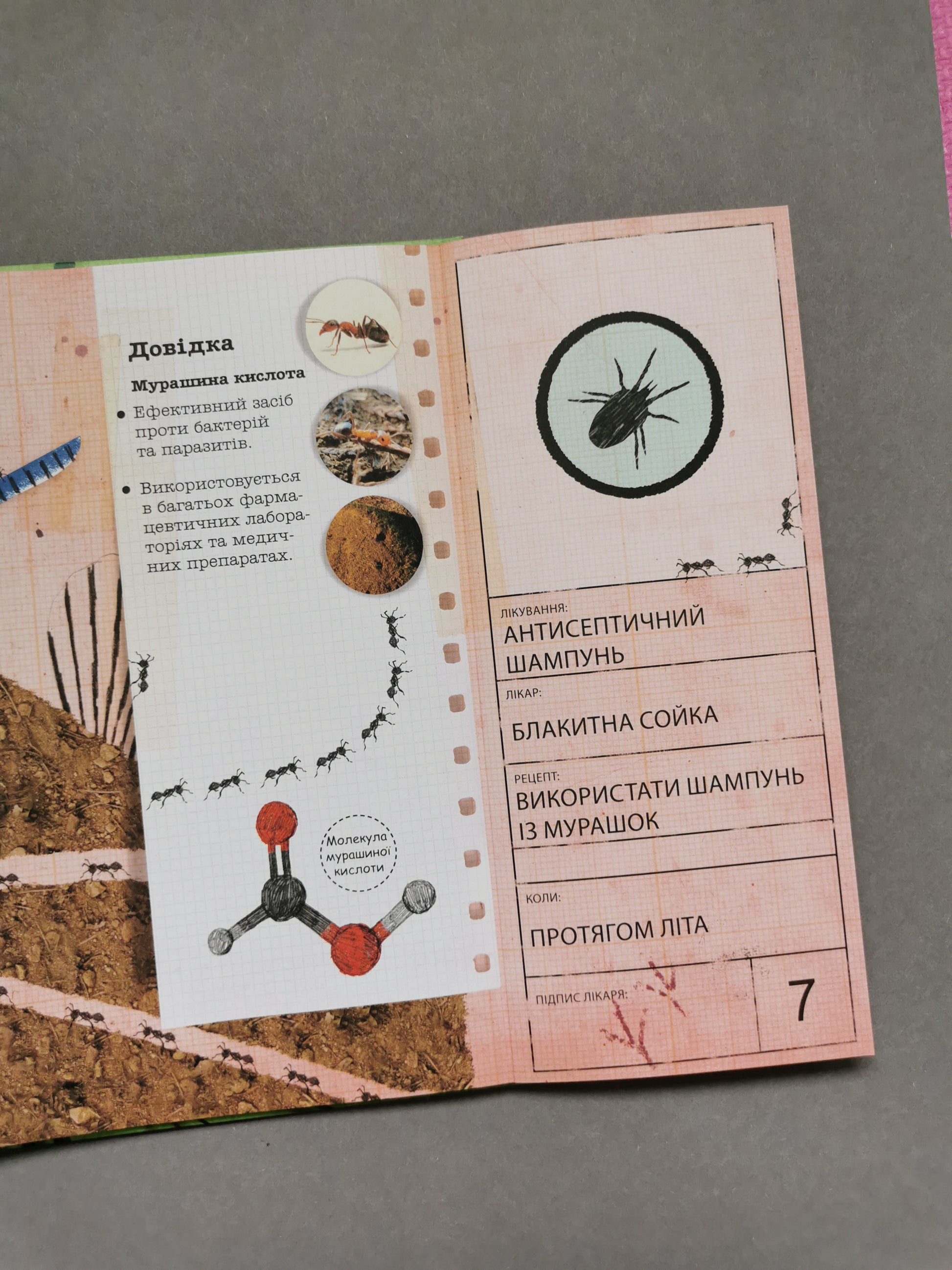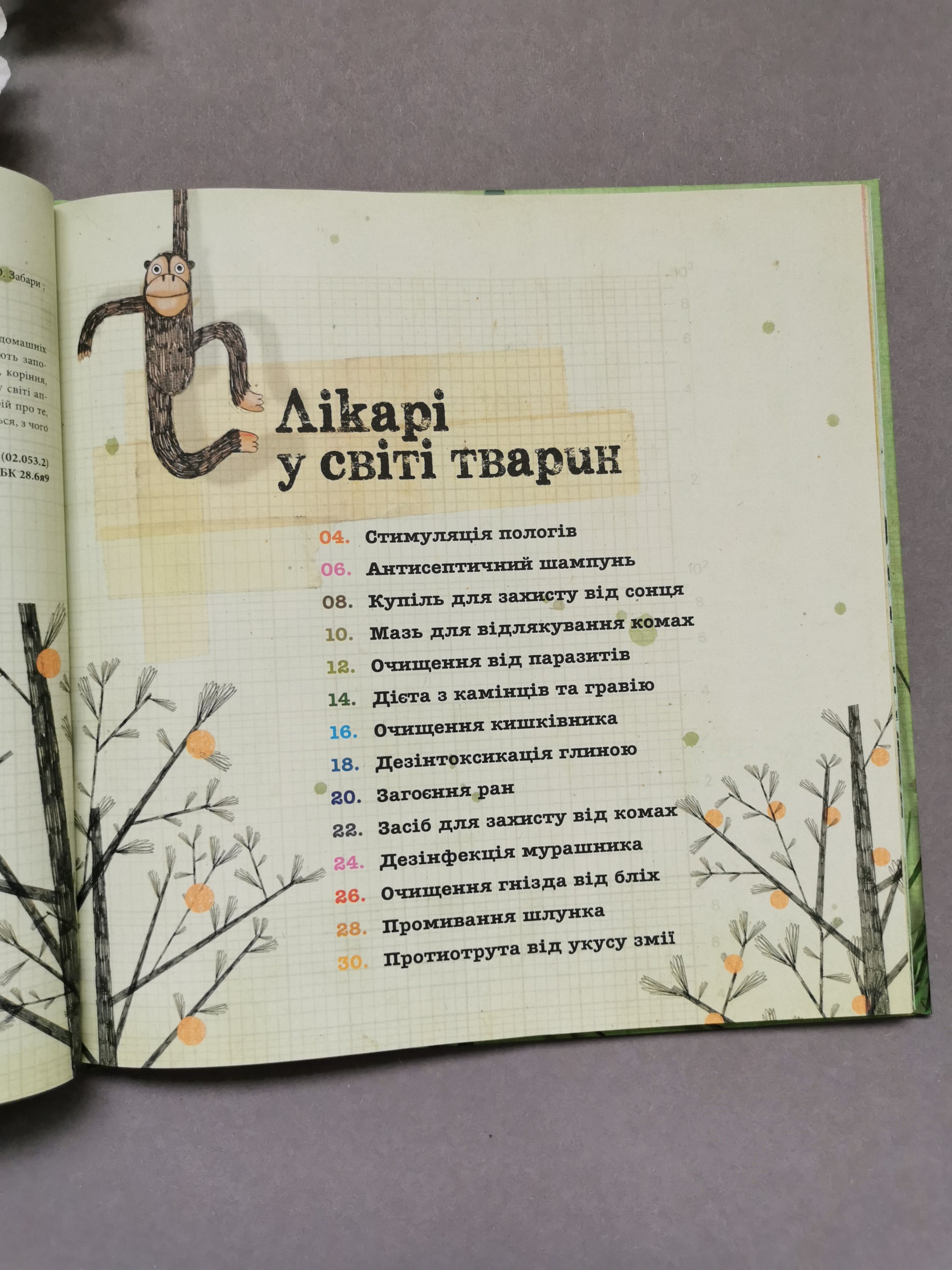Що роблять дикі тварини, коли хворіють? На відміну від домашніх улюбленців, вони не можуть відвідати ветеринара. Зате вміють запобігати хворобам та лікувати самих себе за допомогою листя, коріння, насіння, мінералів. А ще вони мають доступ до найбільшої у світі аптеки — природи. Ця книжка розповідає 14 дивовижних історій про те, як дикі тварини застосовують особливі ліки й самі здогадуються, з чого їх приготувати.