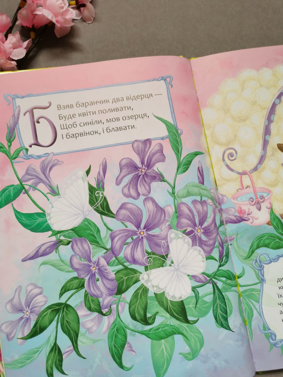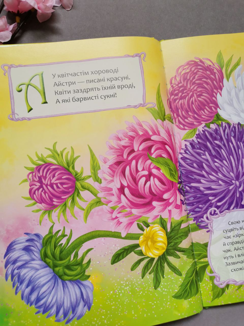 Книга являє собою ілюстрований українсько-англійський словничок для дітей. Слова поділені на теми (наше тіло, сім’я, дім, їжа, спорт, музика, квіти, птахи, транспорт та т.ін.) До конжного слова додана транскрипція.