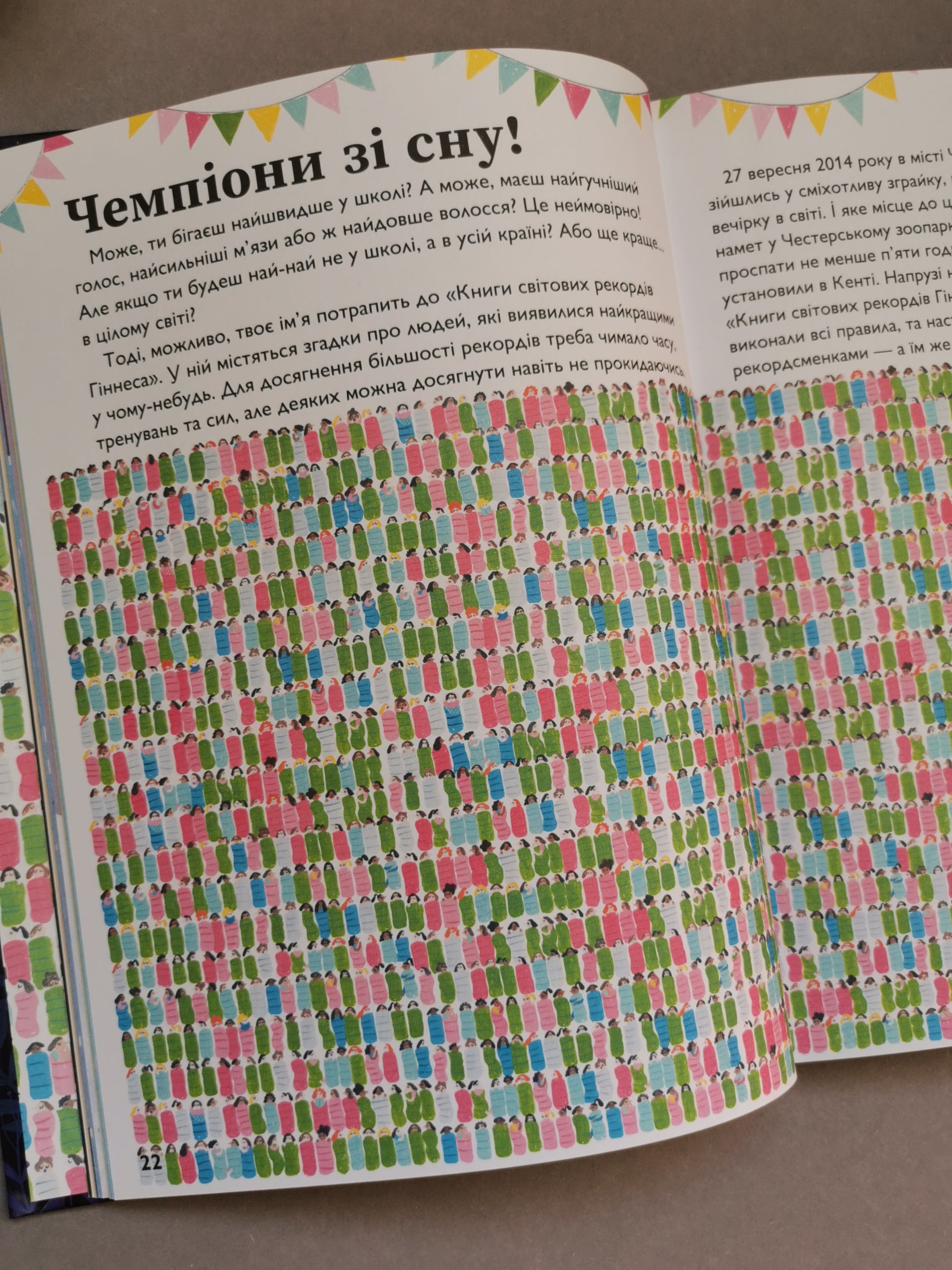 Ви помічали, що часто діти мають безліч питань, навіть коли готуються лягати в ліжко. «Чому потрібно спати?», «Як сплять акули?», «Чому ведмеді сплять всю зиму?», «Яке ліжко найбільше?», «Чому не всі вночі лягають спати?». Відповіді на ці та багато інших питань вони знайдуть у цій книжці. Також з історій діти дізнаються, що відбувається на всіх континентах, у різних країнах, на землі, під землею чи навіть у космосі, у світі тварин і в їх організмі, поки вони сплять.