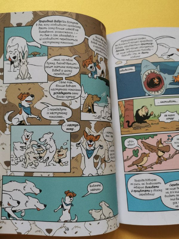 Цей комікс розповість цікавинки про вірних друзів людини. Разом із песиком Руді ви дізнаєтеся, як з’явилися собаки, які незвичайні бувають породи, як цуцики сприймають світ та чому вони такі грайливі порівняно зі своїм найближчим родичем вовком. Важливі й пізнавальні факти тут подано в легкій, розважальній формі, тож точно запам’ятаються надовго.