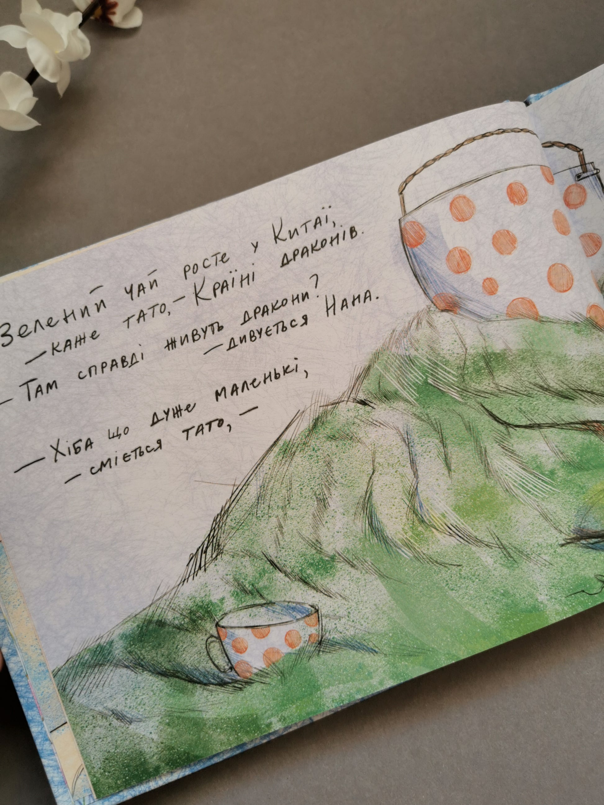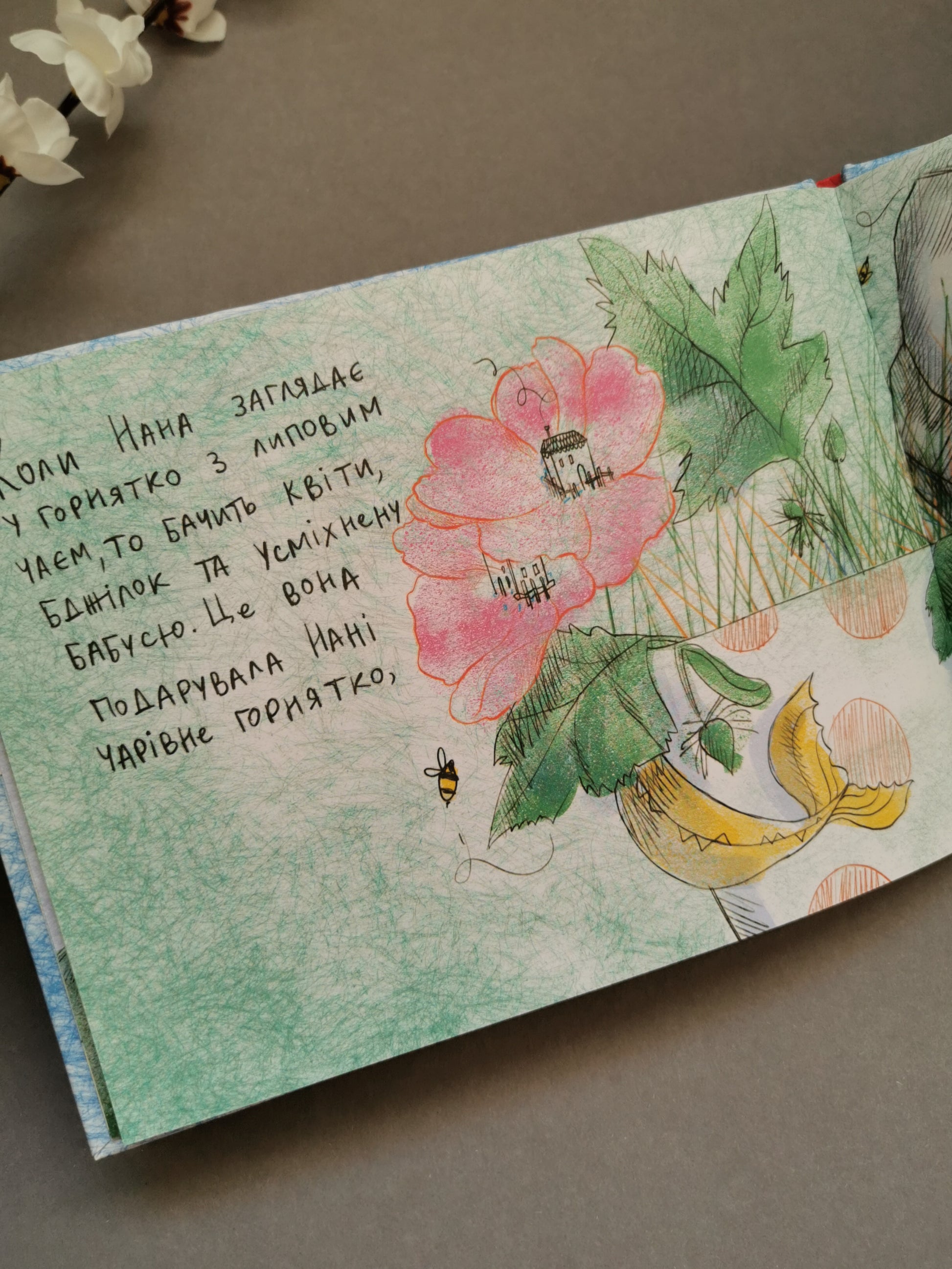 Нана запрошує до чаювання маленьких і дорослих читачів! Дівчинка любить пити чай і слухати історії про нього. Коли вона заглядає у своє чарівне горнятко, то бачить справжні чайні казки: про драконів, слонів і навіть пухнастих курчаток. А ви любите пити чай і фантазувати? Що, як і ваше горнятко — чарівне?