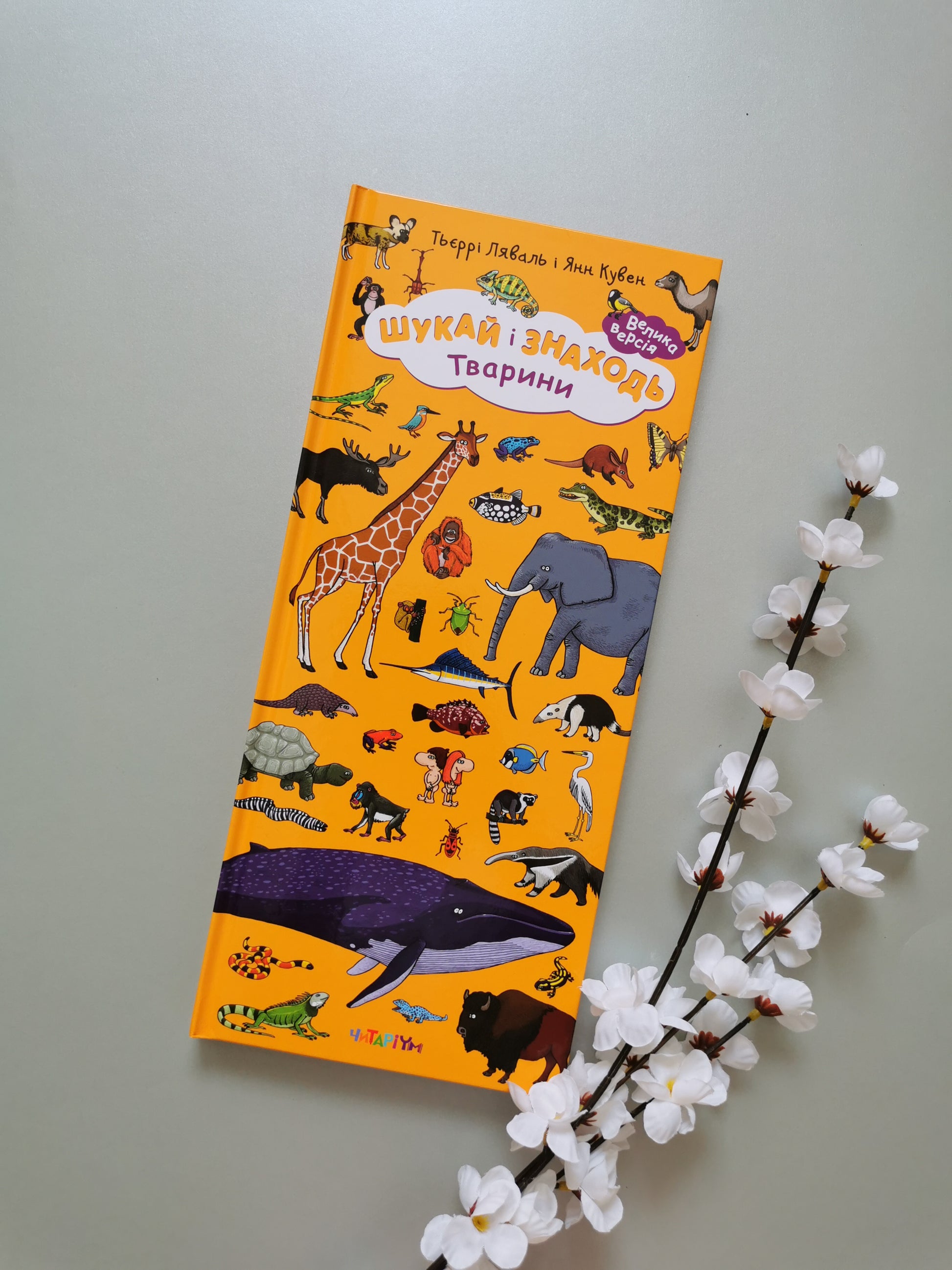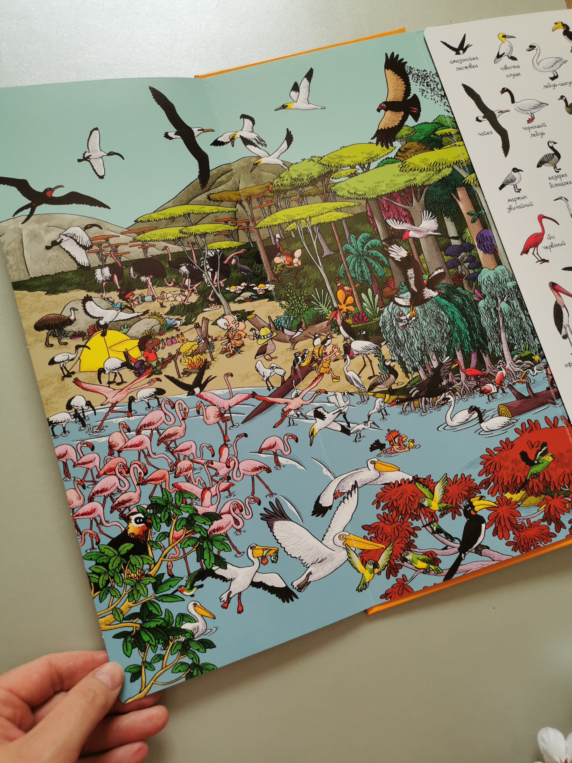 Вперше українською мовою виходить книга Тьєррі Лаваля і Янна Кувена "Шукай і знаходь. Тварини". Під час гри знайди на картинках людей, тварин або речі, намальовані на сторінках цієї книжки. Пильнуй! Шукай і знаходь птахів, риб та морських ссавців, ссавців, рептилій та амфібій, комах та павукоподібних. Для дітей від 5-ти до 9-ти років. Розвивайте увагу, фантазію, словниковий запас разом з вашою дитиною. П'ять великих панорам-розворотів запрошують читачів до світу тварин. Знаходьте маленькі зображення птахів, тварин, комах, вигадуйте історії, грайте двох з дитиною або великою компанією, вивчайте нові назви та пізнавайте навколишній світ з нашою енциклопедією-віммельбухом. Яких птахів можна знайти на сторінках нашої книжки? Чорний дрізд, американський клювач, блакитна сойка, сірий папуга, рибалочка, рябий ворон, журавель степовий, шпак, червоногрудий тукан і багато-багато інших.
