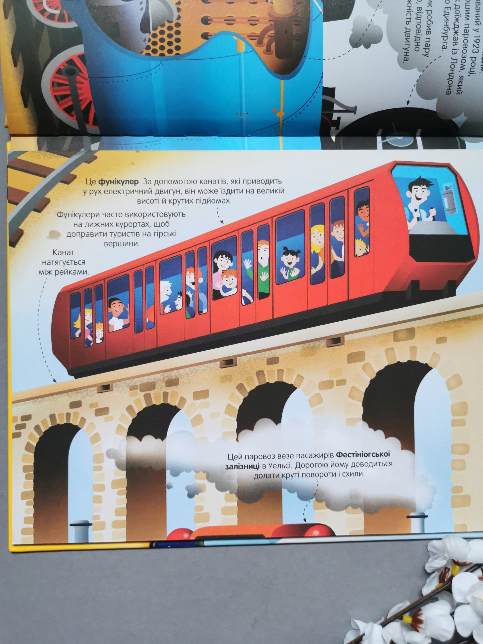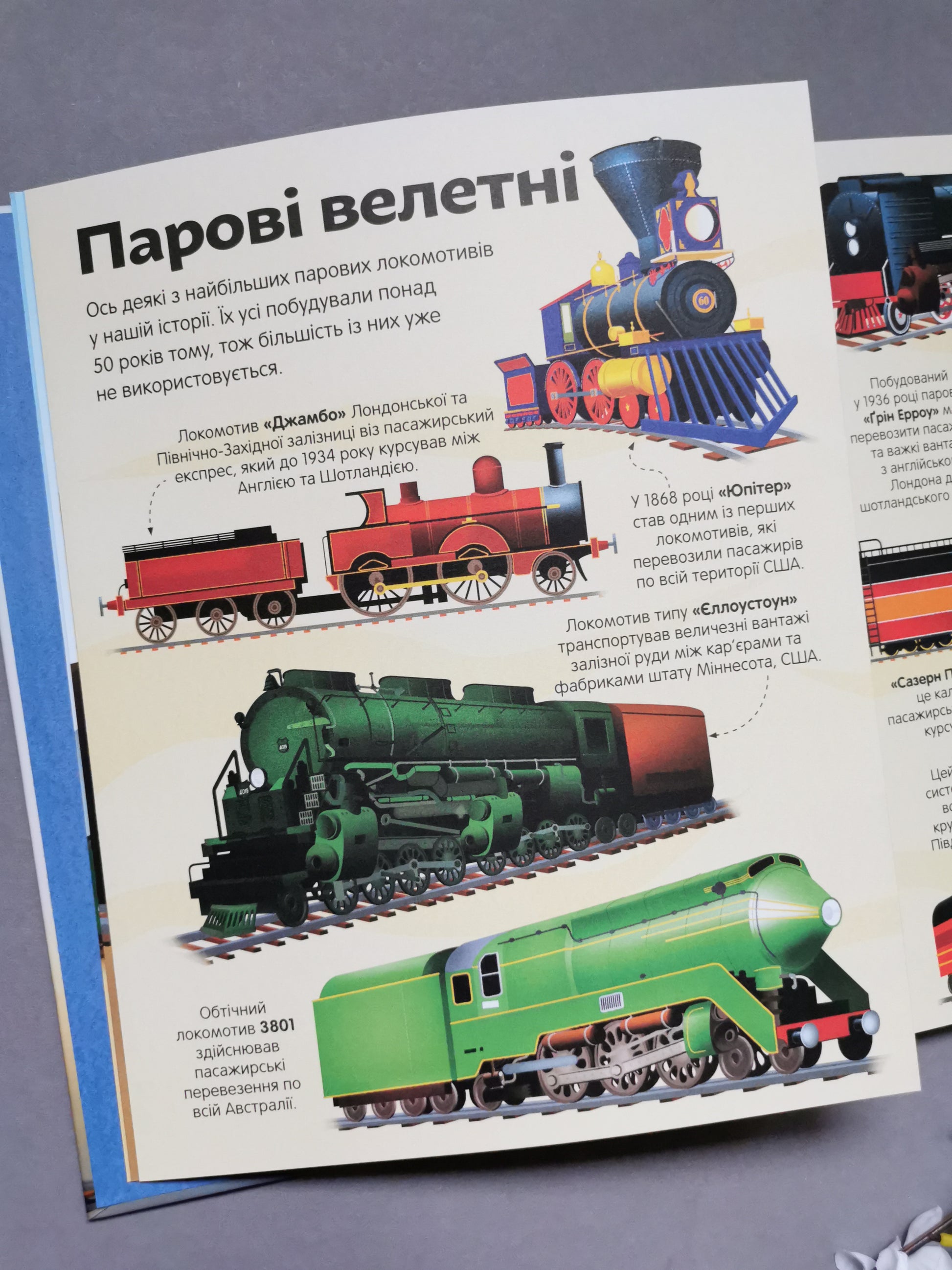 Відкривай величезні розгортки та дізнавайся цікаві факти про найбільші, найдовші та найпотужніші потяги в нашій історії – від шумних парових і дизельних локомотивів до високошвидкісних потягів на електроприводі!