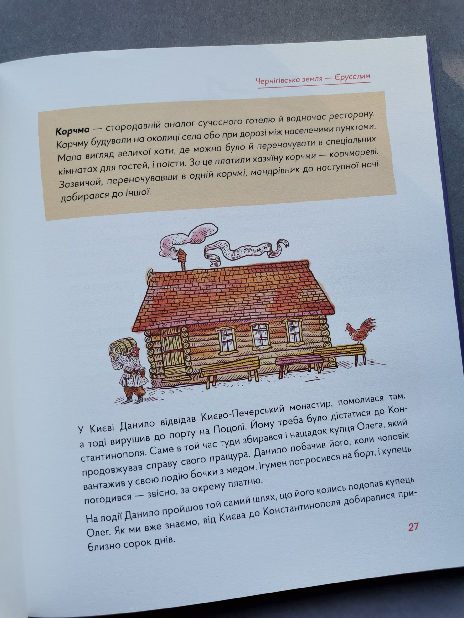 Відколи існують наші землі, люди мандрували звідси до далеких країв. Тільки в давнину це було значно довше й ризикованіше, ніж тепер. Як і навіщо подорожні долали великі відстані в різні історичні періоди — від Русі й до сучасності? Разом із героєм книжки читачі помандрують сушею, водою, небом — і часами.